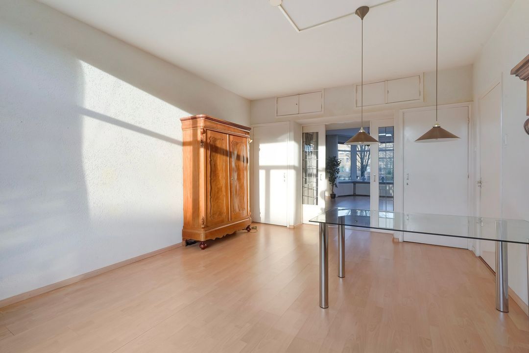 A spacious, move-in ready 5-room apartment (approx. 109 m²) on the first floor, featuring an original en-suite living room, 3 bedrooms, 2 sunny balconies, and a storage unit in the basement.