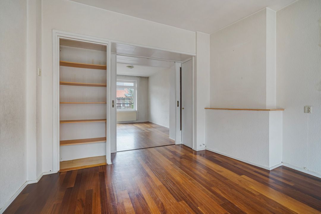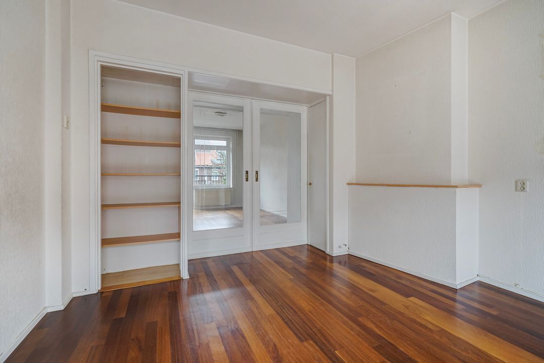 Sfeervolle L-vormige kamer ensuite voorzien van schuifdeuren en 4 vaste kasten met aan de voorzijde een zonnig balkon op het zuidoosten en aan de achterzijde een balkon op het noordwesten (avondzon) met bergkast.