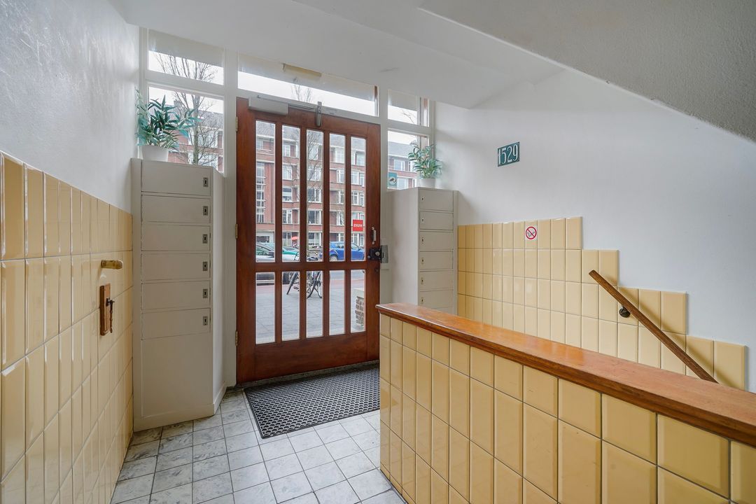 Verzorgd gesloten portiek met bellen- en brievenbussentableau, hal met lift en/of trappenhuis naar de 1e verdieping.