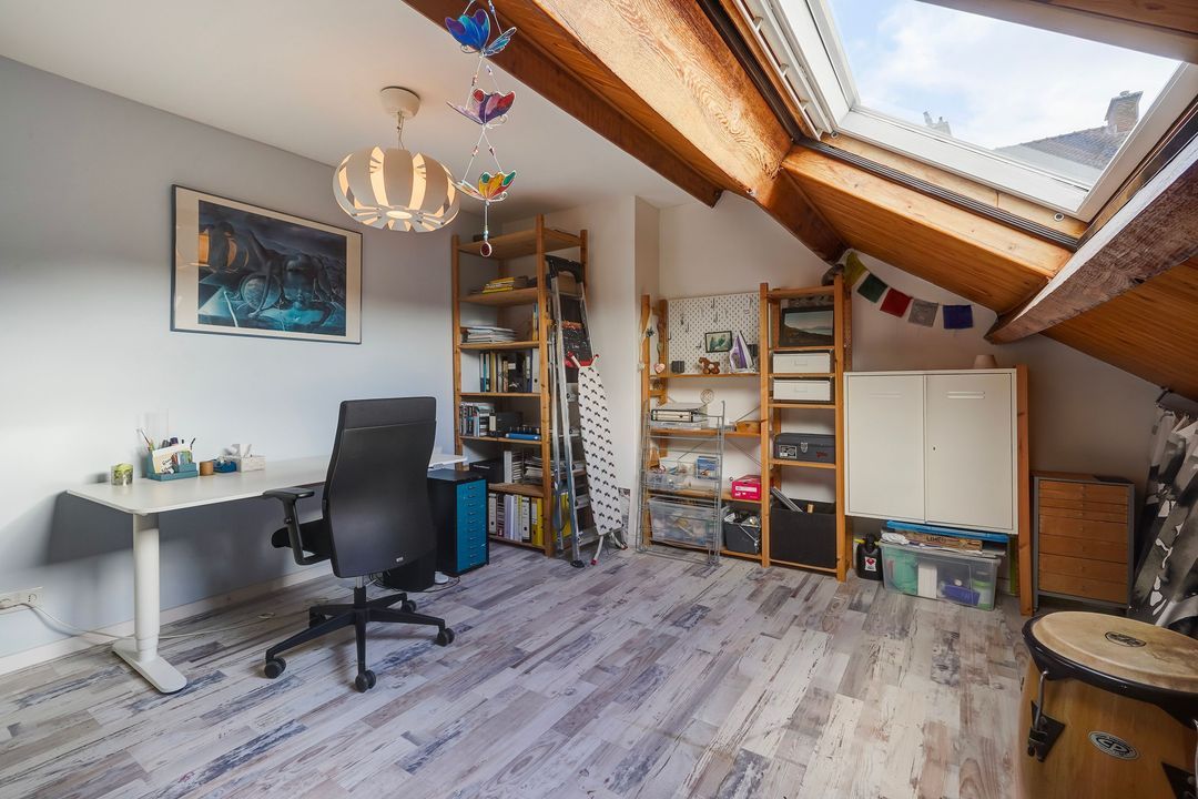 Overloop met toegang tot de vliering. Voorslaapkamer met dakraam en toegang tot de wasruimte met wastafel. Ruime achterslaapkamer met brede dakkapel.