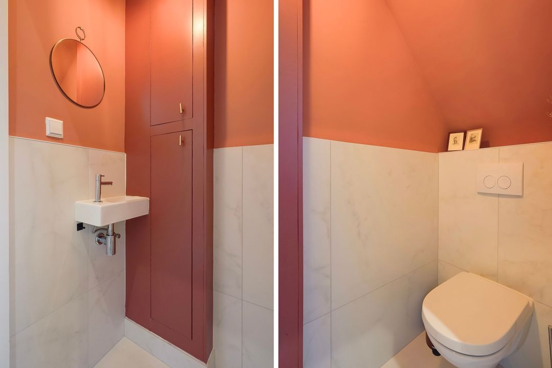 Via klassieke voordeur met glas in lood bovenlicht, entree appartement, hal voorzien van granitovloer doorgelegd in de gang, tochtdeur, separaat modern toilet met fontein.