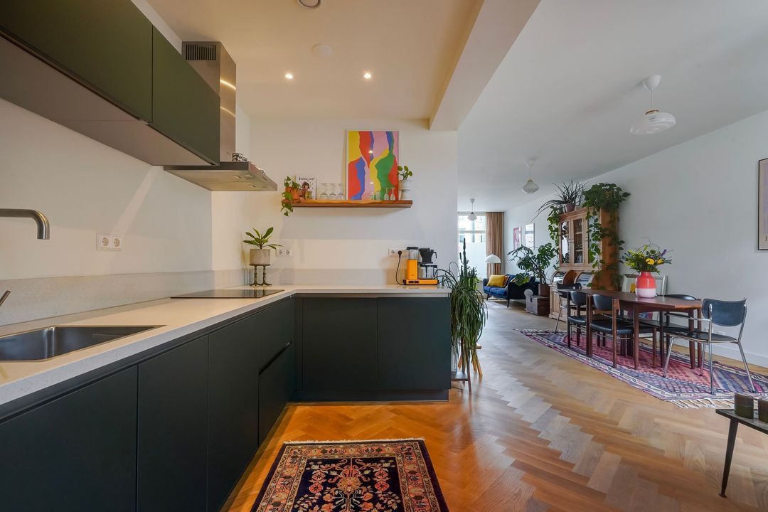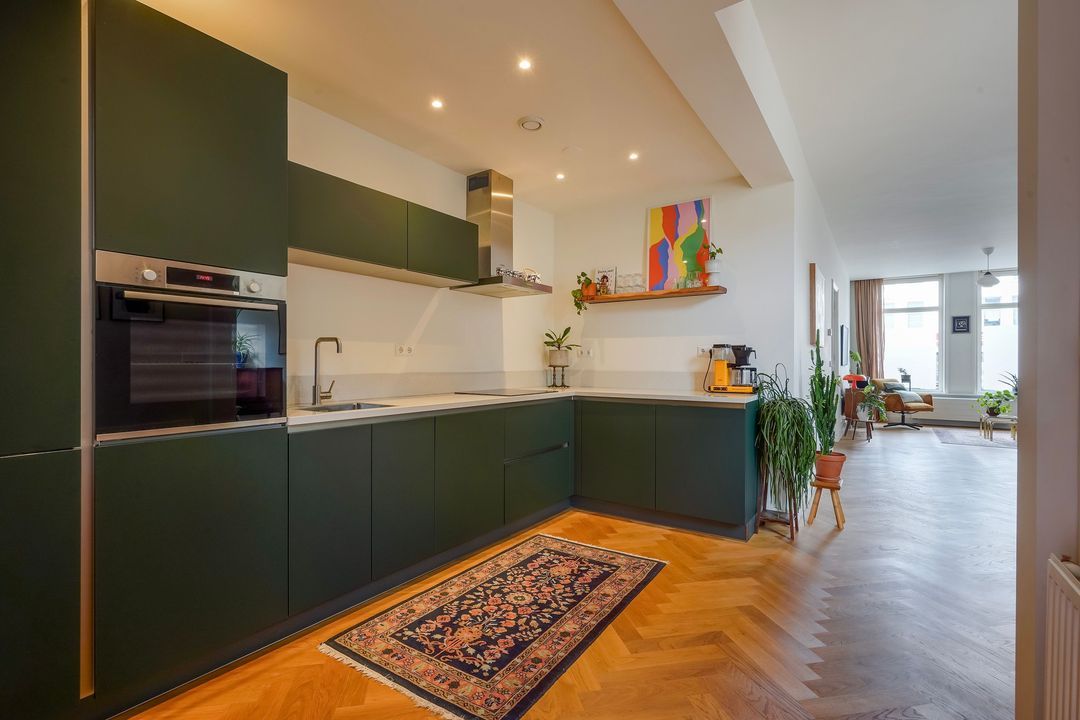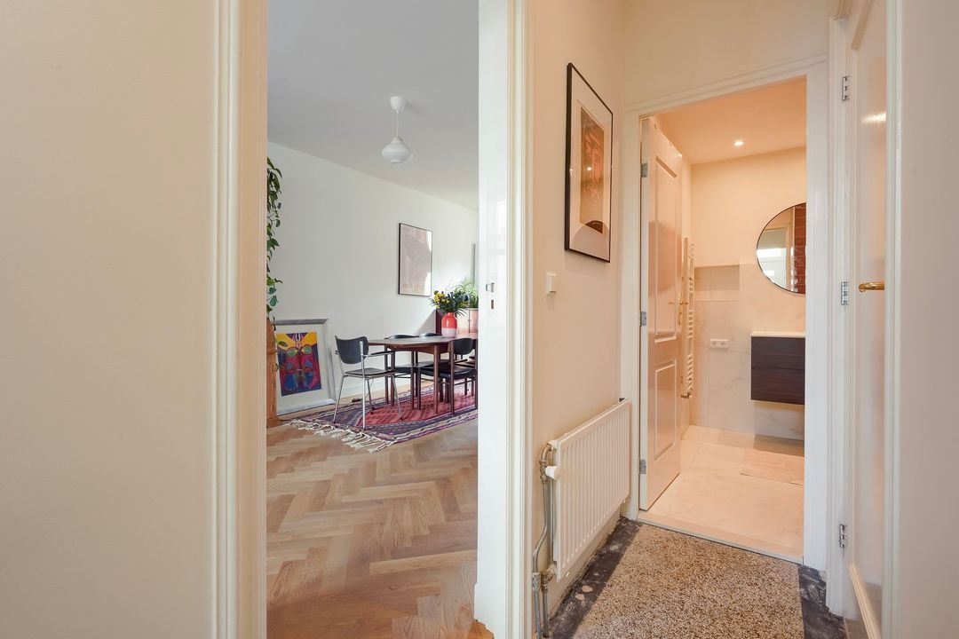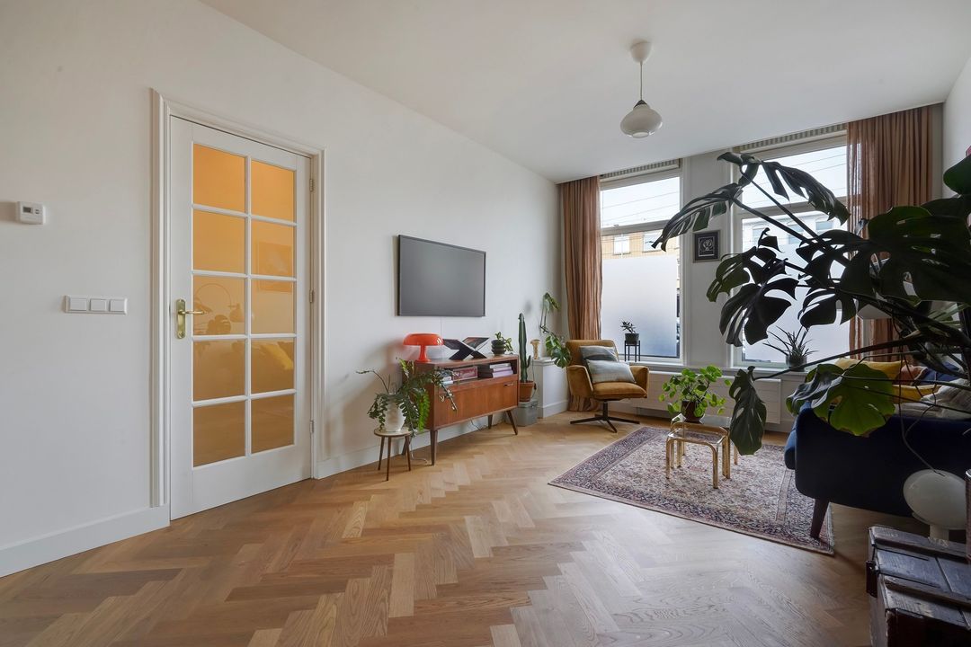 Bijzonder sfeervolle en fraai gerenoveerd parterre appartement (ca. 82 m²) voorzien van doorgebroken woon-/eetkamer met half open keuken, 2 slaapkamers in de achterbouw, luxe badkamer en een zonnige achtertuin met berging. Gelegen op eigen grond.