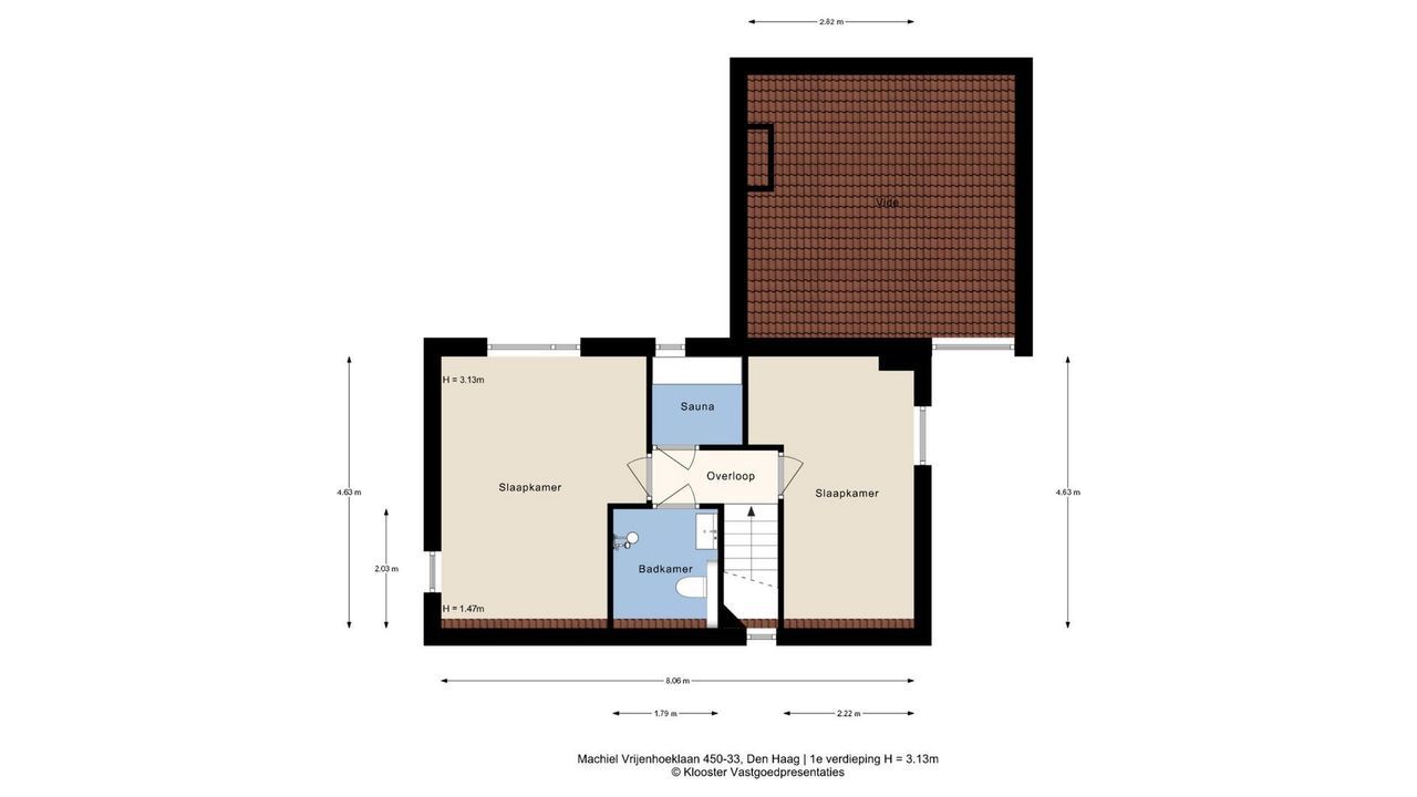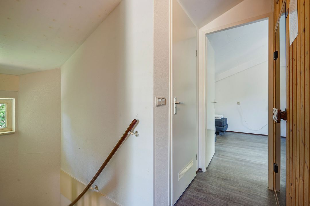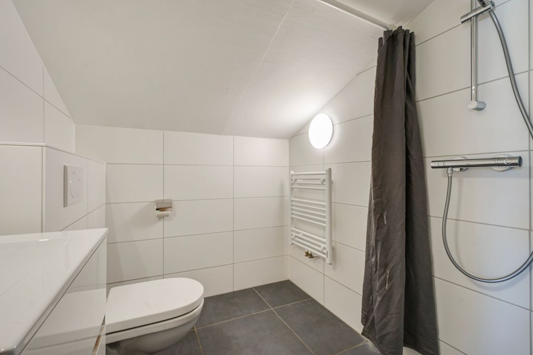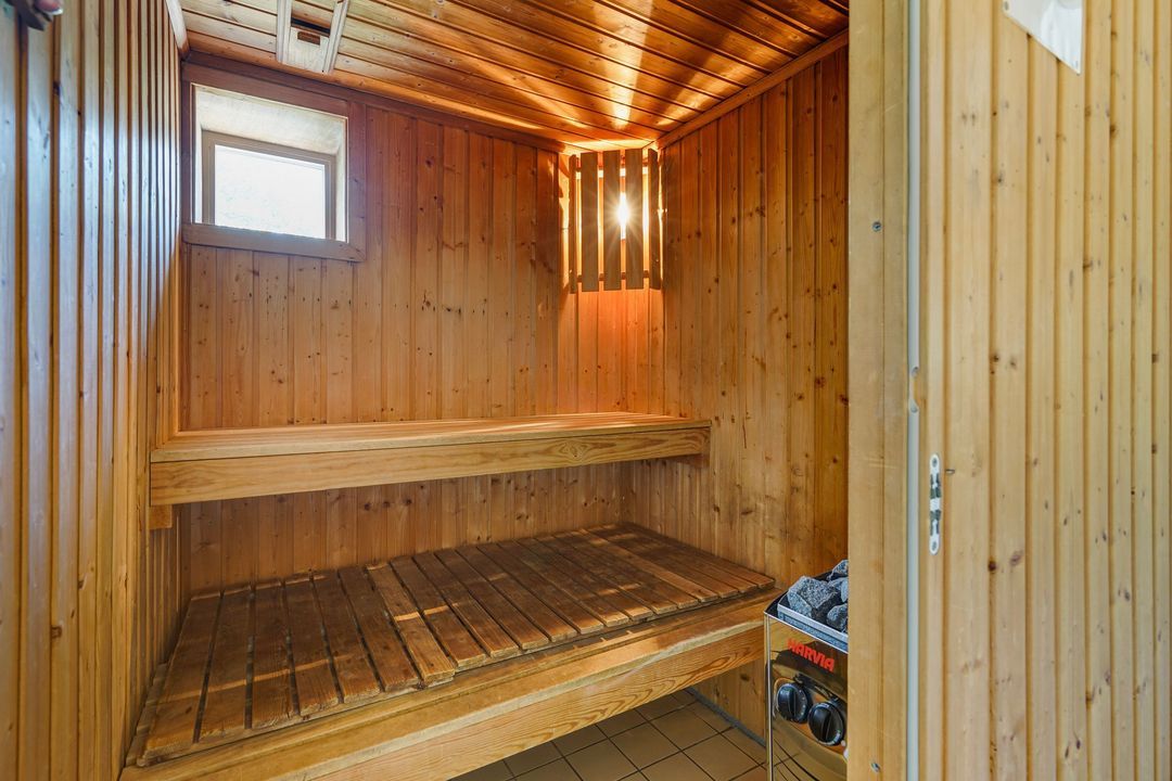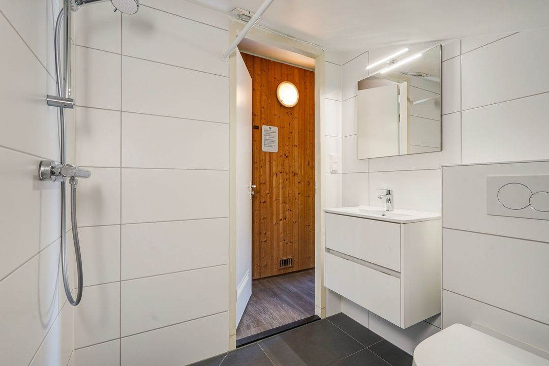 Landing, sauna and 2nd modern fully tiled bathroom with a walk-in shower, 2nd toilet, washbasin and design radiator. Two spacious bedrooms.