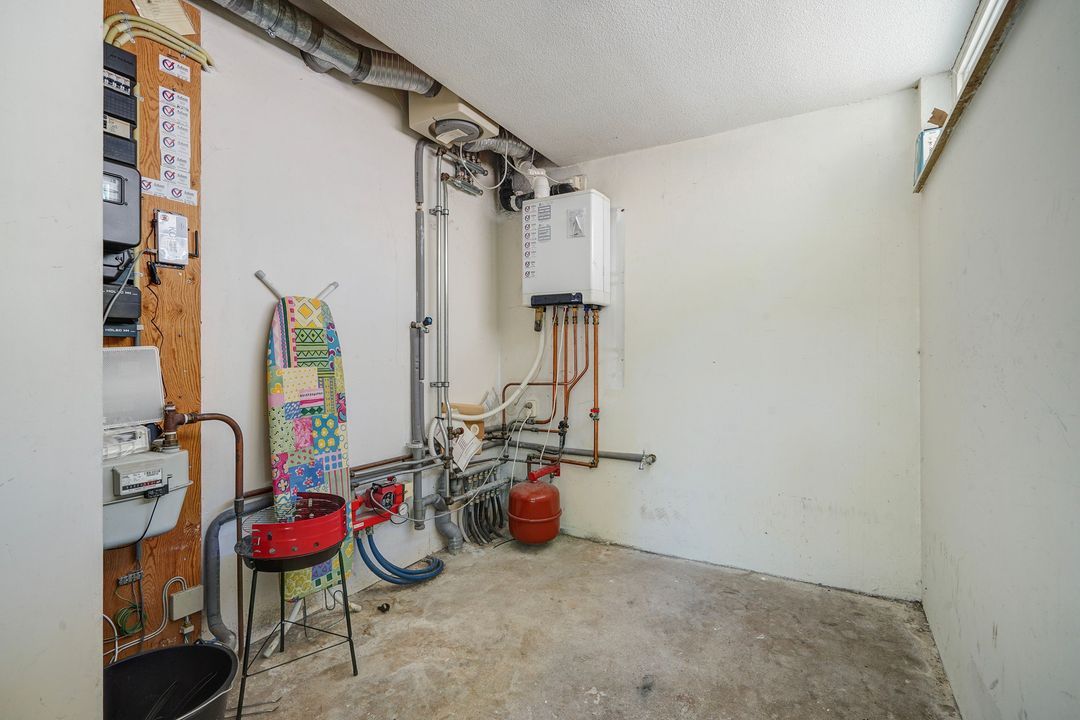 Indoor storage room, with washing machine connection, borders the house and can be reached from outside.