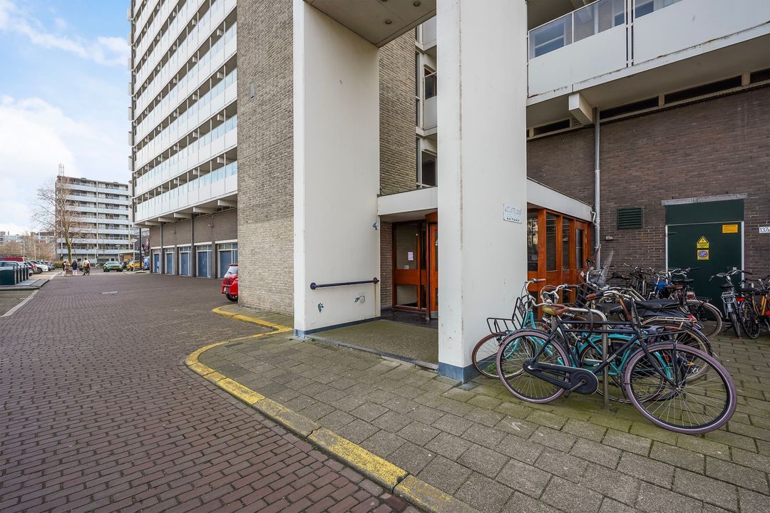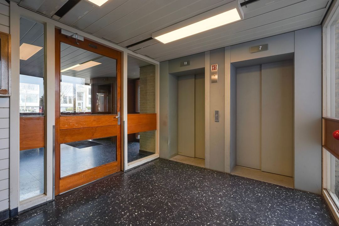 Centrale entree met brievenbussen-/bellentableau en videofoonsysteem, via trappenhuis of lift naar 11e verdieping.