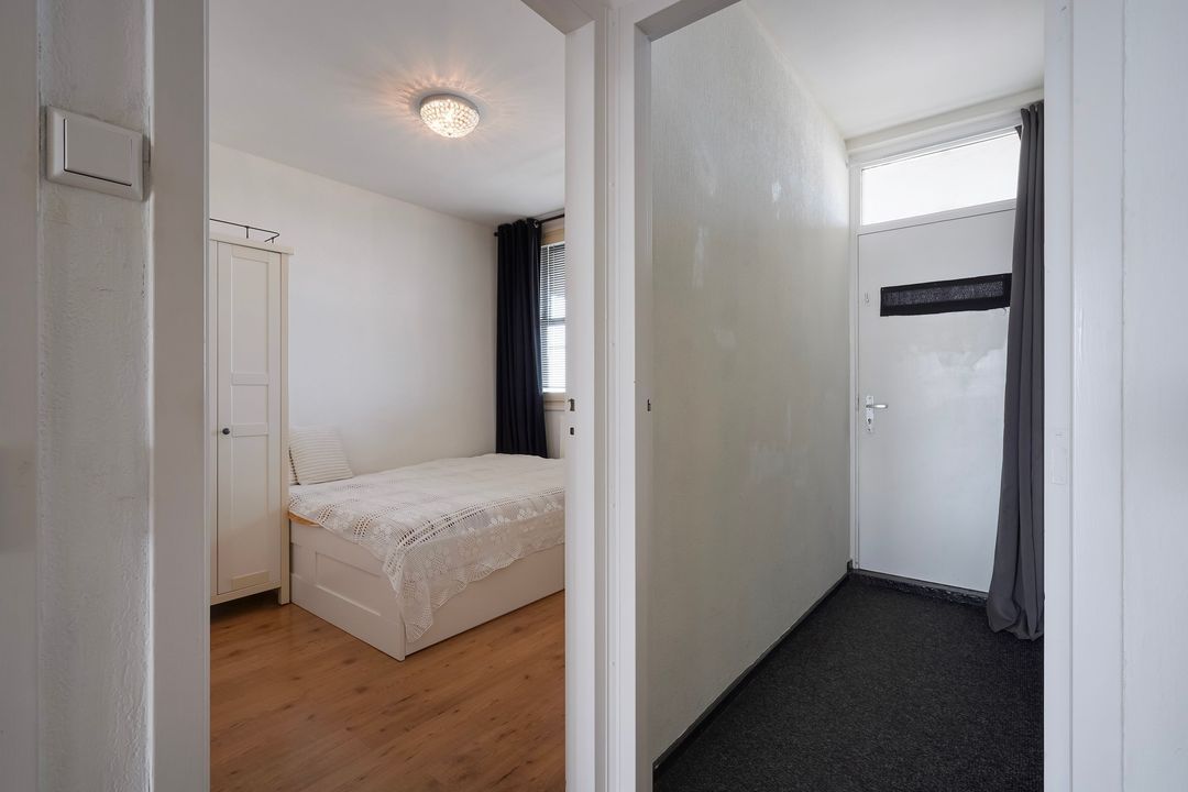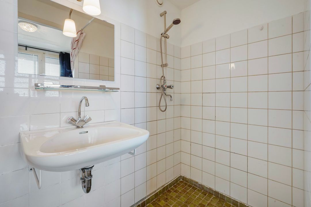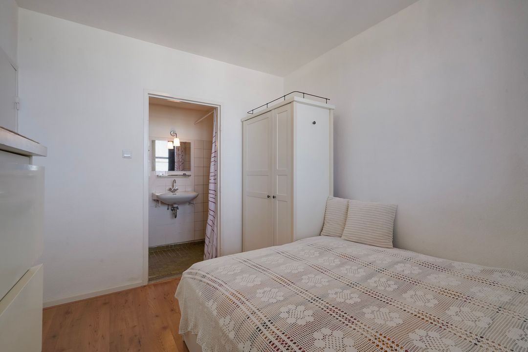 Entree appartement, vestibule met meterkast, tochtdeur naar gang, separaat toilet met fontein en vaste kast. Ruime slaapkamer met toegang naar badkamer voorzien van ruime inloopdouche en vaste wastafel.