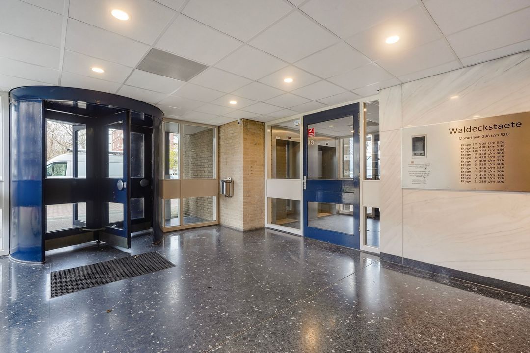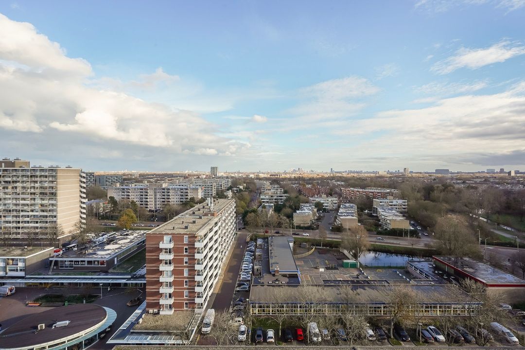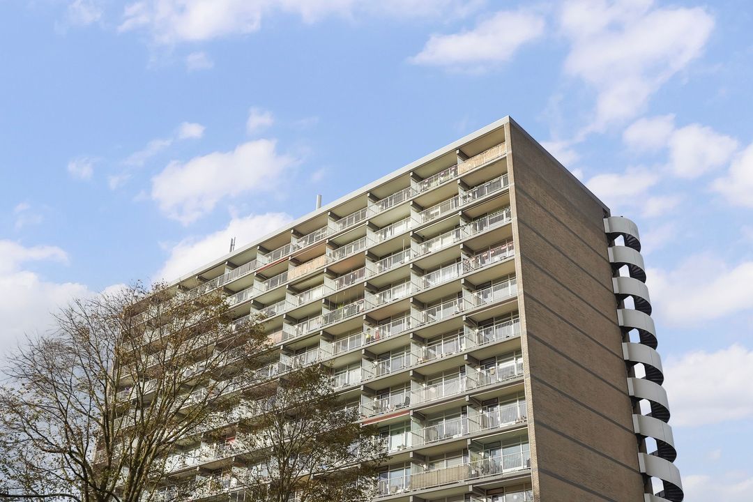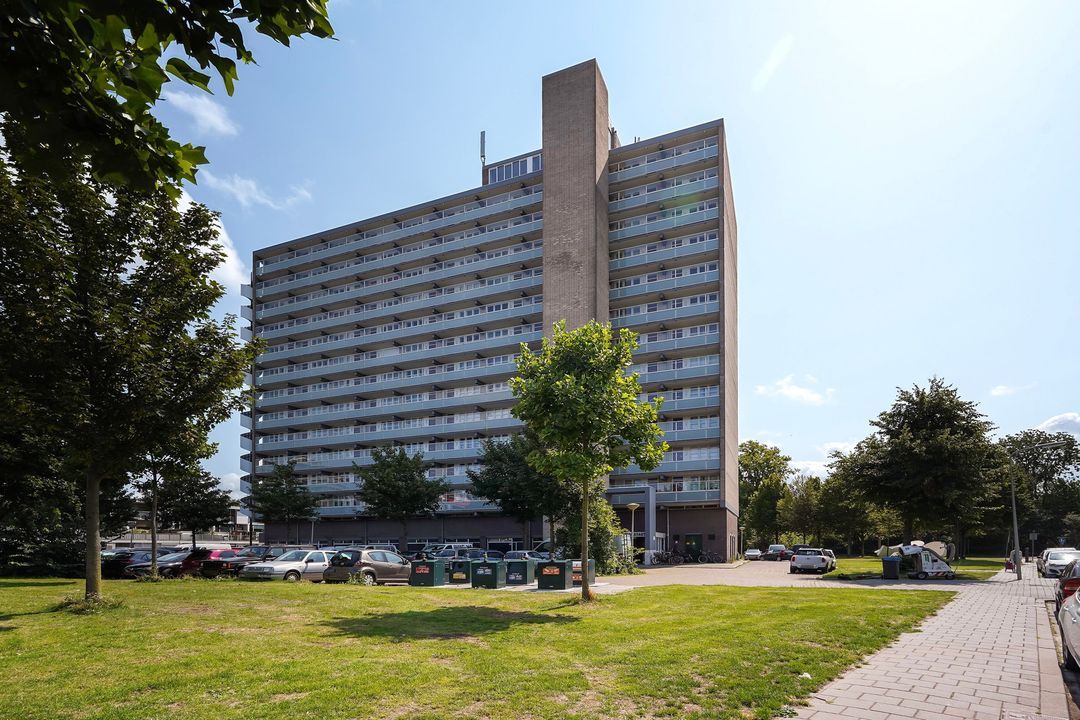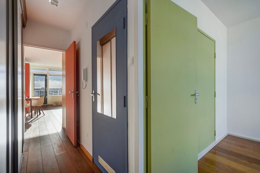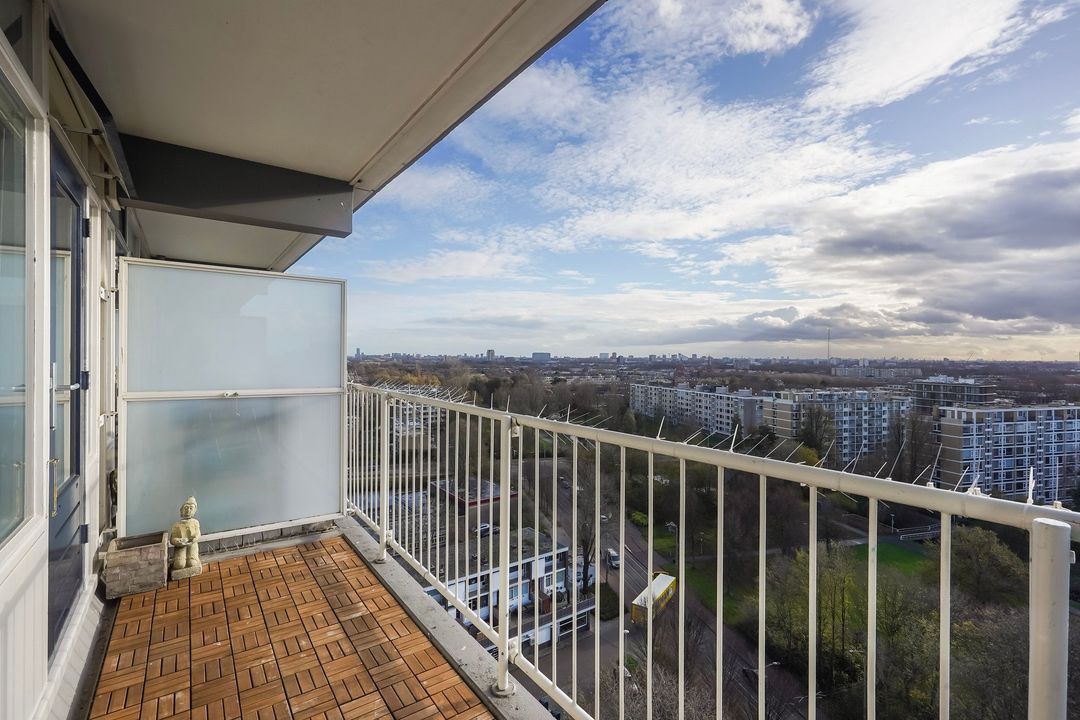 Gelegen op de 12e TOP-verdieping, een licht en zo te betrekken 2-kamer appartement voorzien van een woonkamer met open keuken, aparte slaapkamer, moderne badkamer met WC en ingang via de gang, riant zonnig balkon, gang met zeer veel kastruimte achter een ingebouwde wand met schuifdeuren, en separate (fietsen)berging.