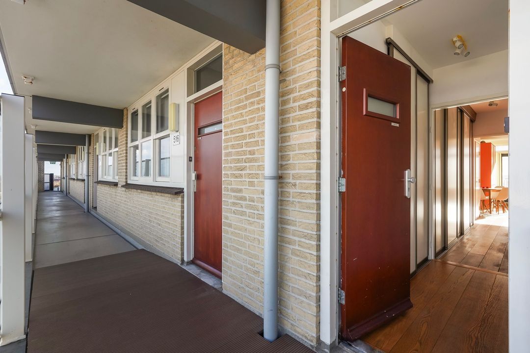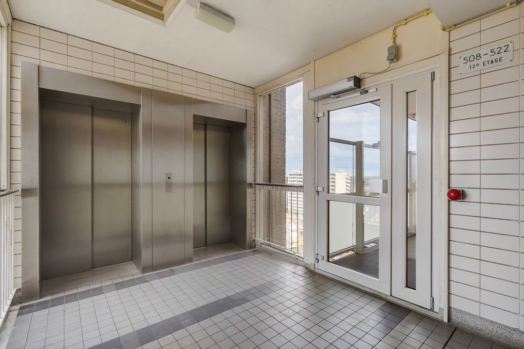 Centrale entree met bellentableau, videofoonsysteem en brievenbussen, via 2 vernieuwde liften (of trappenhuis) naar 12e verdieping, en via de galerij met prachtig zeezicht toegang tot het appartement.