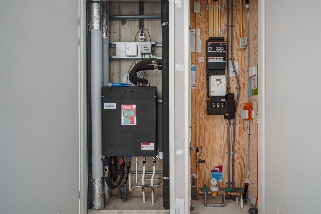 Verwarming middels stadsverwarming, gedeeltelijk vloerverwarming en warmtepomp. Warmwatervoorziening middels stadsverwarming.