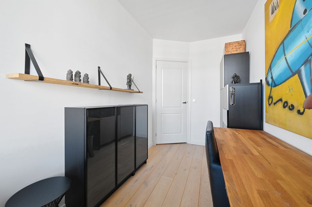 The living room opens onto the southwest-facing balcony, which enjoys afternoon and evening sun and unobstructed views on the “Stokroosveld”. It is equipped with electric blinds.
