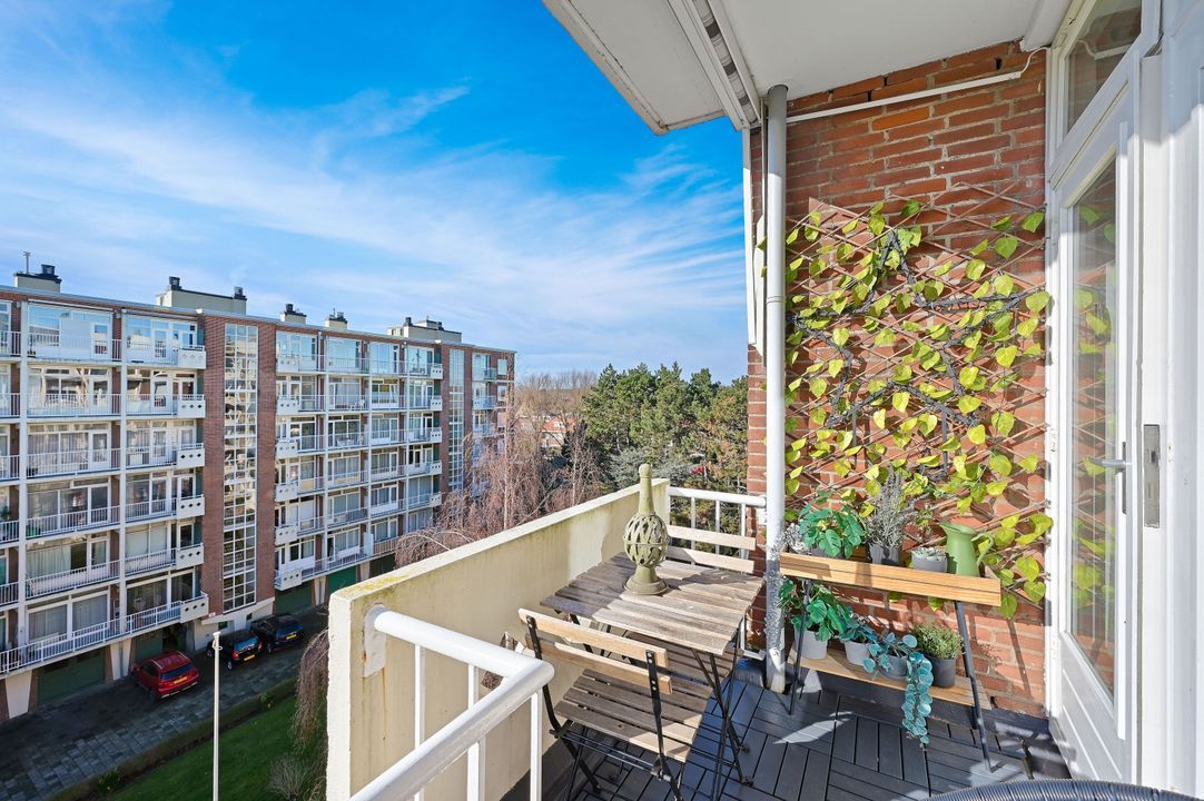 Vanuit de woonkamer toegang tot het balkon, gelegen op het zuidwesten met middag- en avondzon en vrij uitzicht op het Stokroosveld, voorzien van elektrische zonwering.
