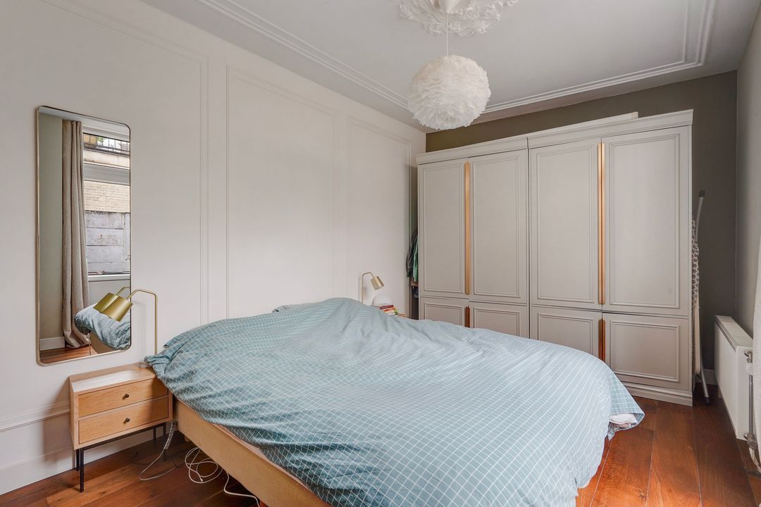 Het appartement is voorzien van originele details, zoals paneeldeuren, schuifseparatie, lijstwerkplafond, marmeren schouwen etc.