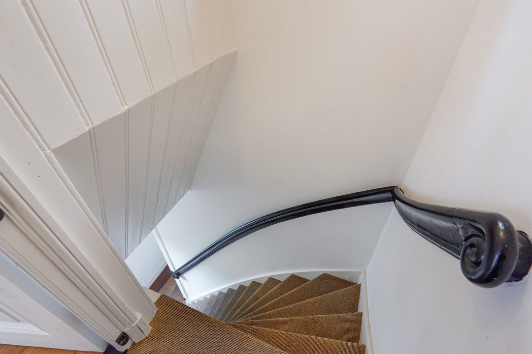 Stairs leading to the first floor landing and access to a spacious bedroom with a built-in wardrobe. This bedroom can be converted into two smaller bedrooms.