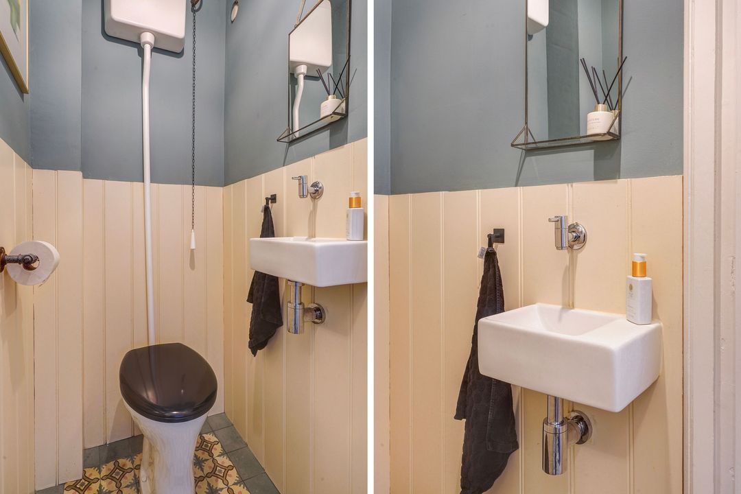 French doors lead to the sheltered southwest-facing backyard. The beautiful Bruynzeel Piet Zwart kitchen, with its 1930s design, is accessible from both the hallway and the dining room and is fully equipped, including a 6-burner gas stove, fridge/freezer and dishwasher.