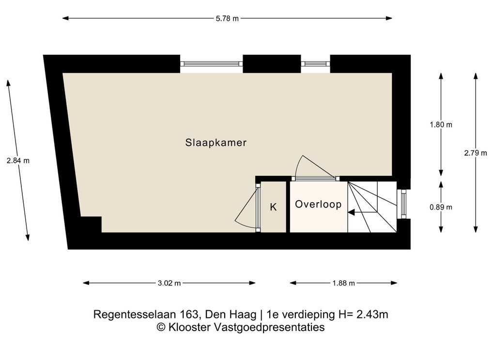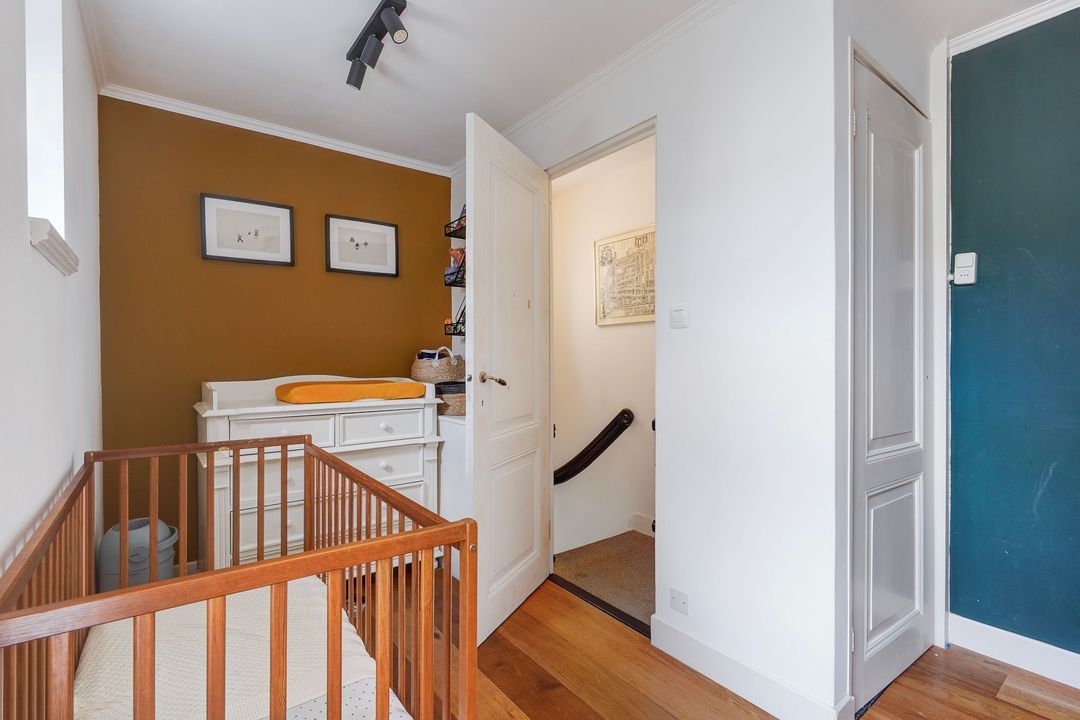 Via trap naar 1e verdieping, overloop en toegang naar ruime slaapkamer met inbouwkast. Met de mogelijkheid om van deze slaapkamer 2 kleinere slaapkamers te maken.