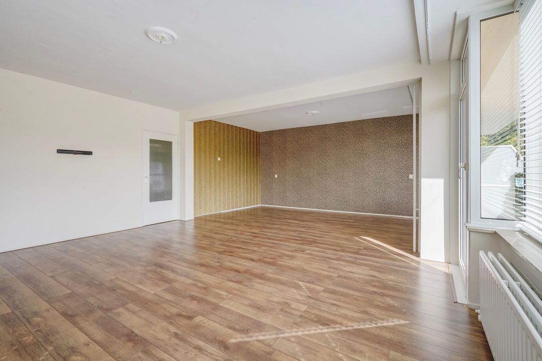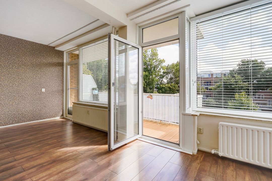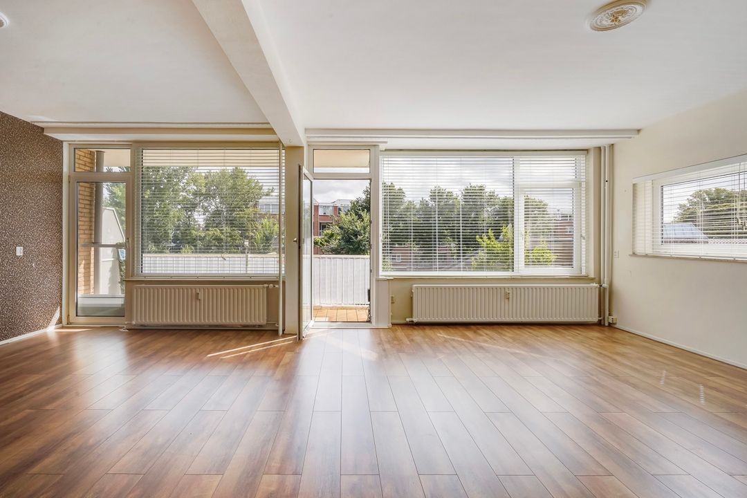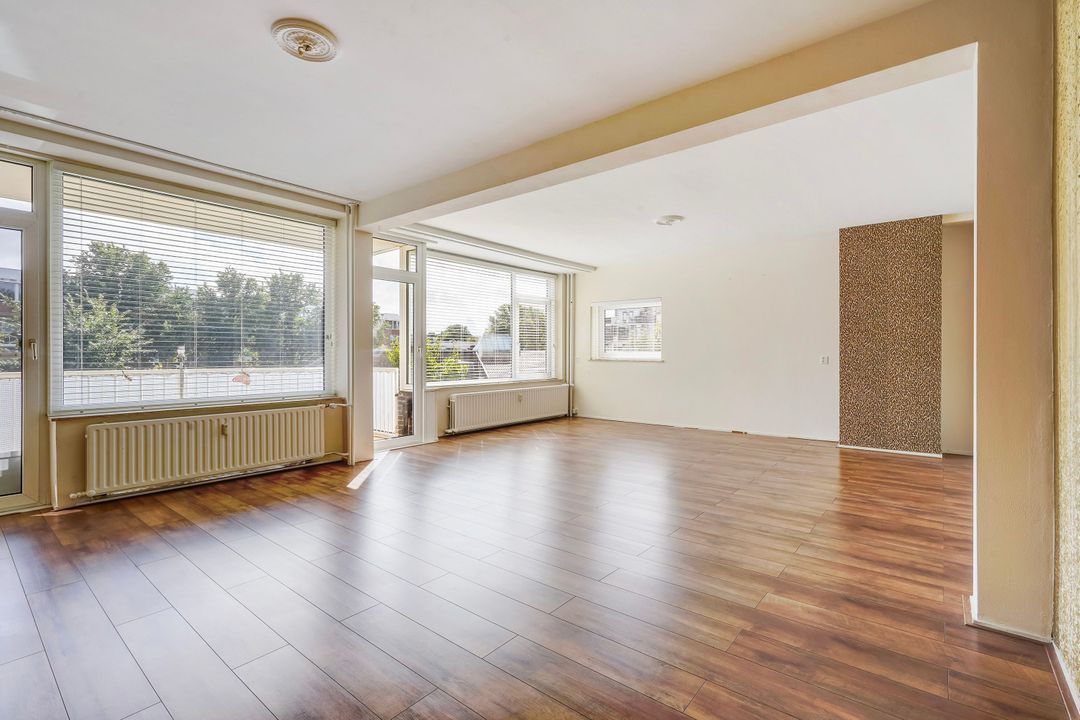 Ruime, lichte en doorgebroken woon-/eetkamer (op te delen in een extra slaapkamer) aan de voorzijde, een zijraam met vrije doorkijk naar de Mozartlaan en 2 deuren naar ruim zonnig balkon, voorzien van loopdekdelen met verlichting, gelegen op het zuiden met vrij uitzicht.