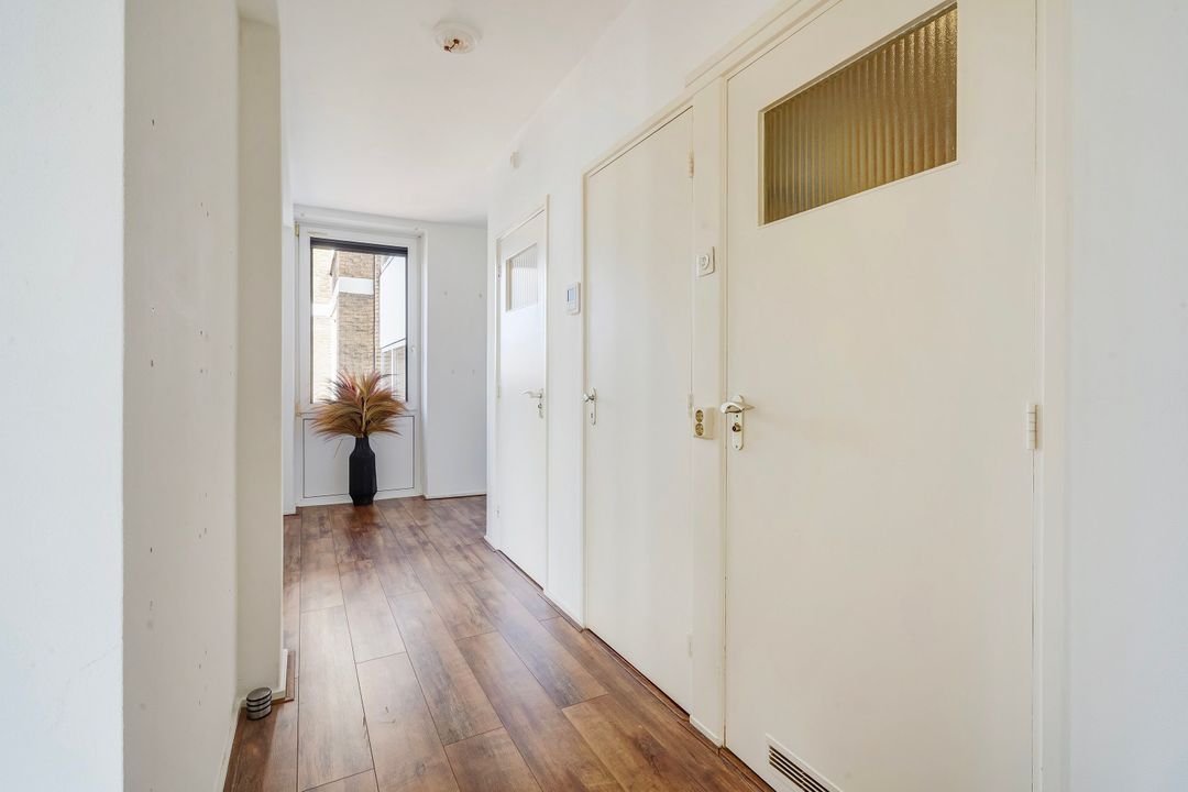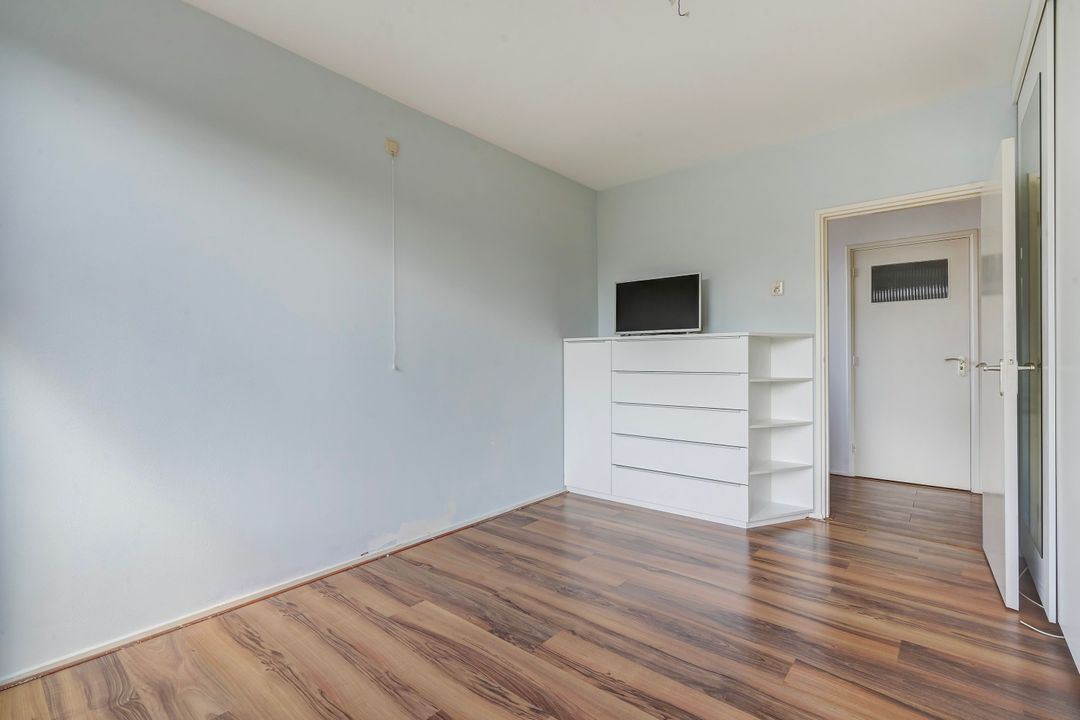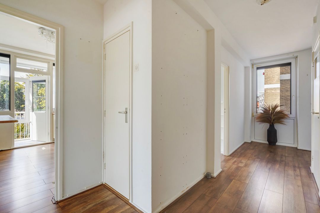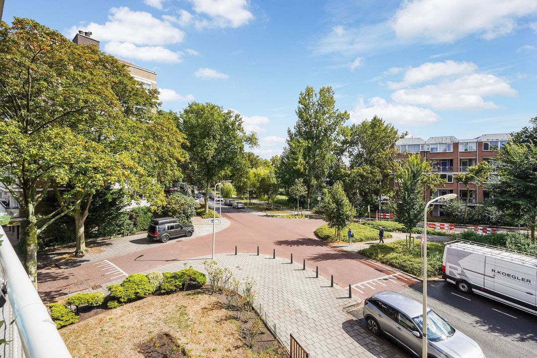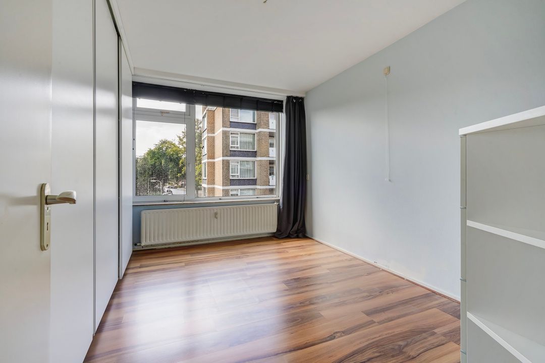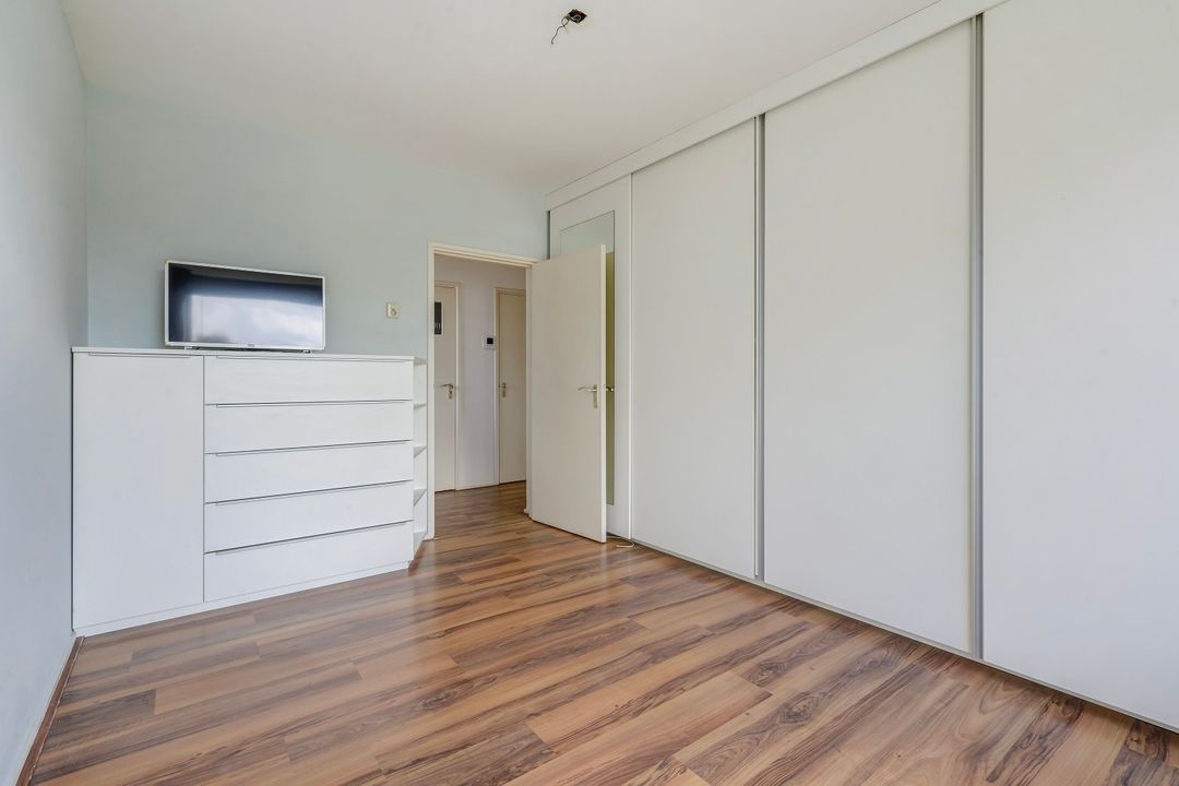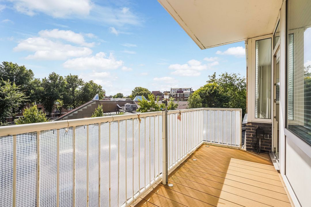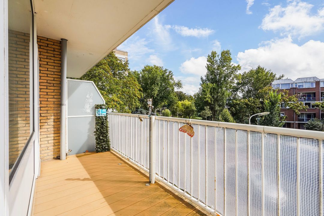 Spacious, bright, and open-plan living/dining room (which can be divided into an additional bedroom) at the front of the building. A side window offers an unobstructed view of Mozartlaan and two doors leading to a spacious, sunny balcony with a lit walkway and south-facing deck offering unobstructed views.