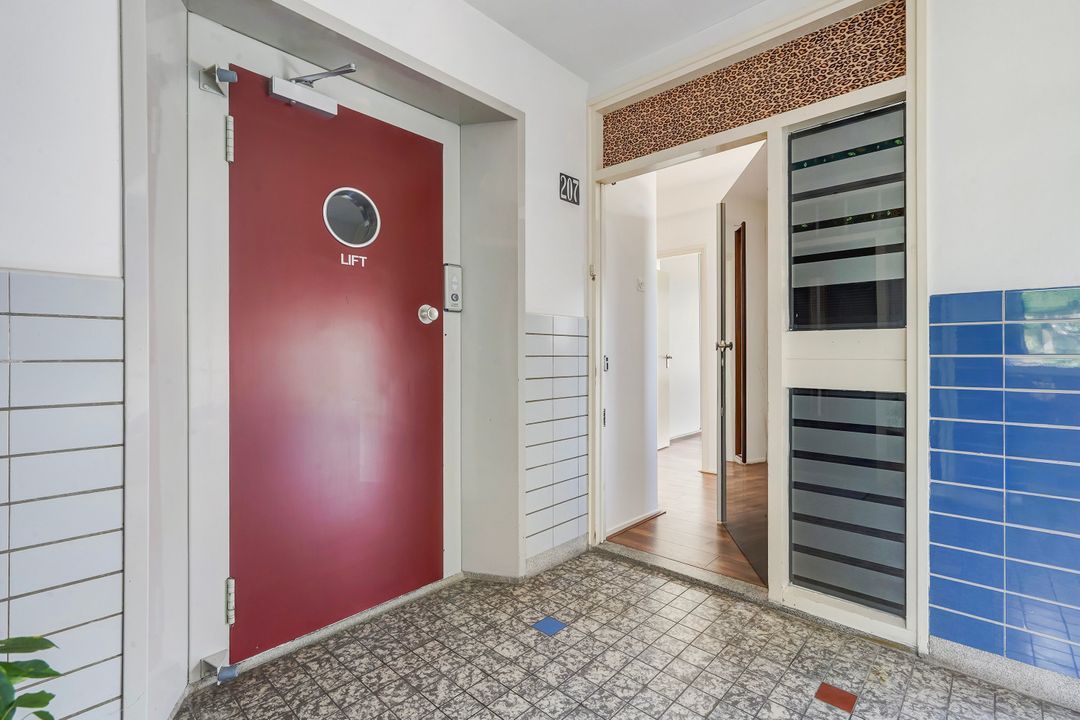 Centrale entree met bellen- en brievenbussentableau met videofoonsysteem, hal (drempelloos) met lift of trappenhuis naar de 2e verdieping.