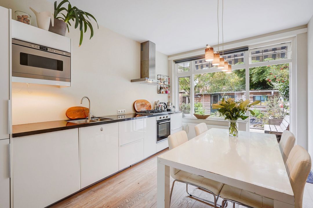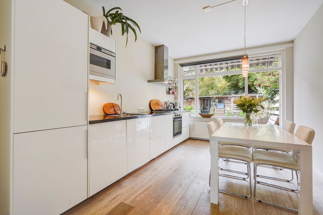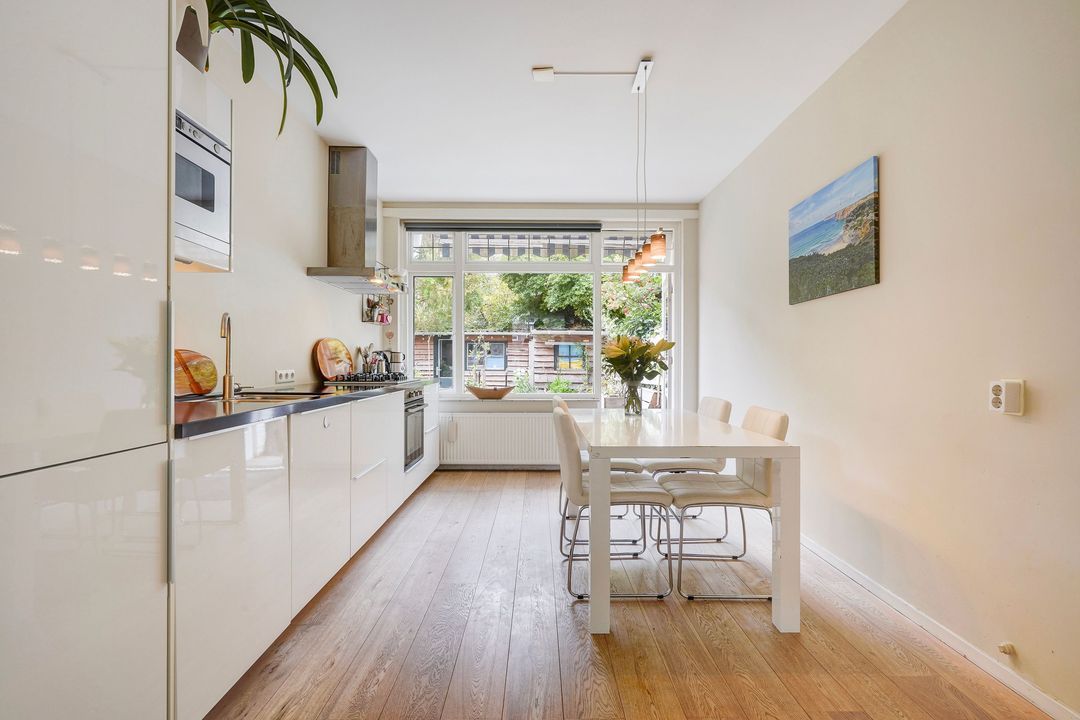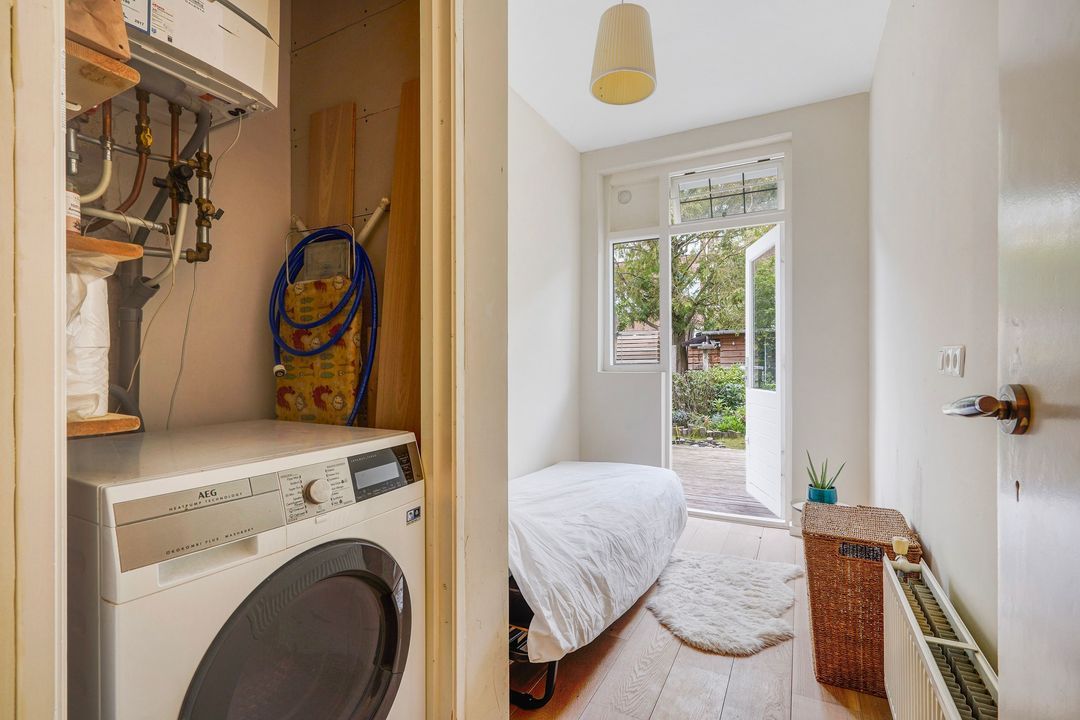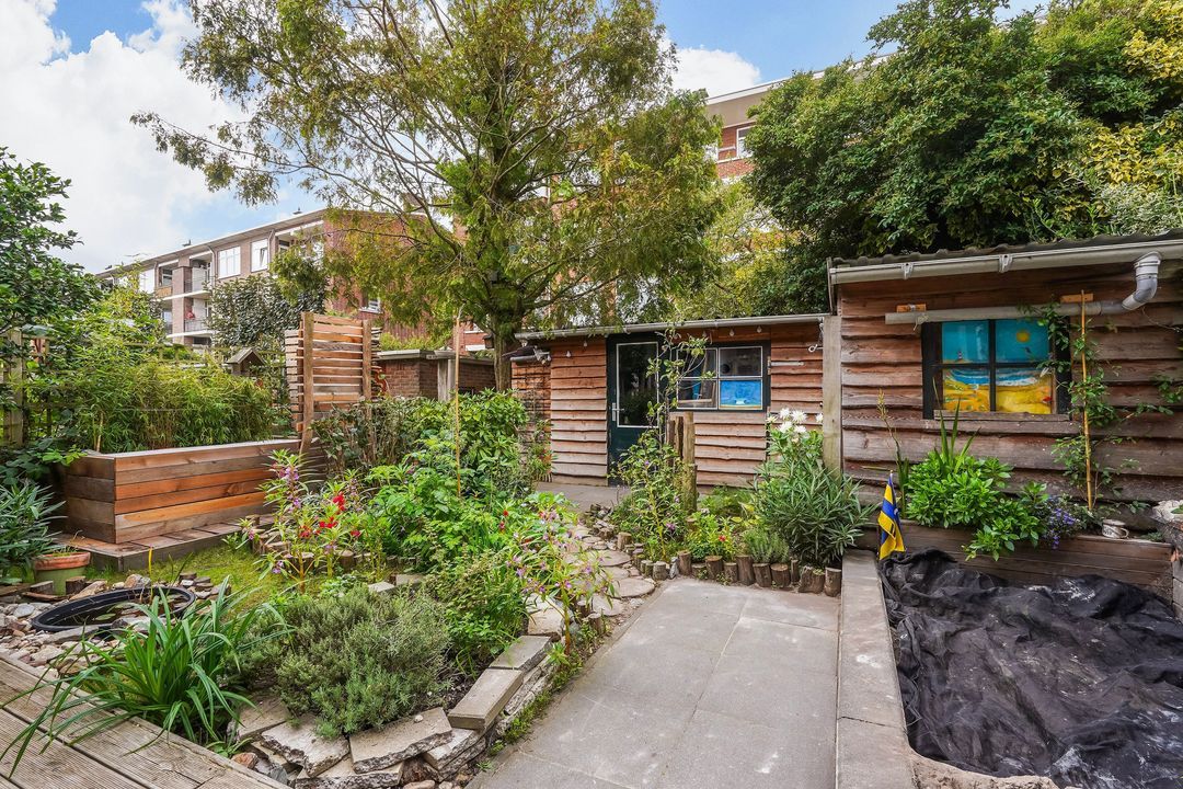 Attractively re-arranged 4-room ground floor apartment with 3 bedrooms, a front and sunny spacious southwest-facing back garden with rear access and detached wooden shed. Bicycle storage.