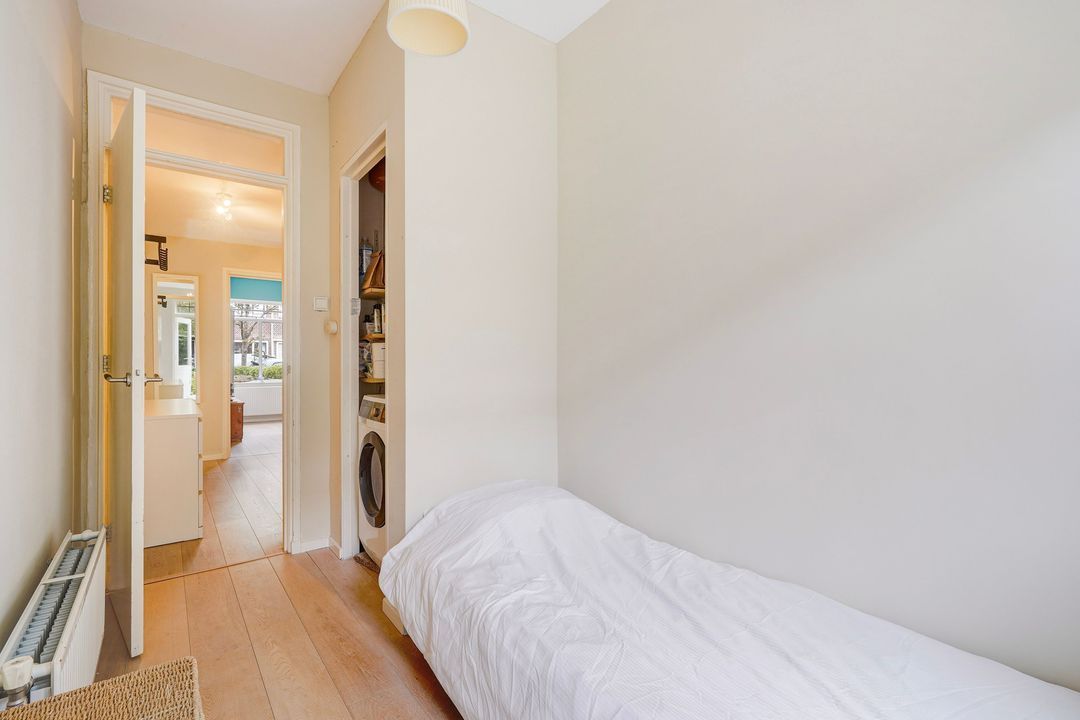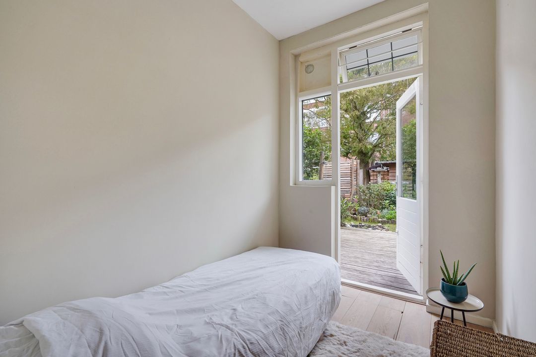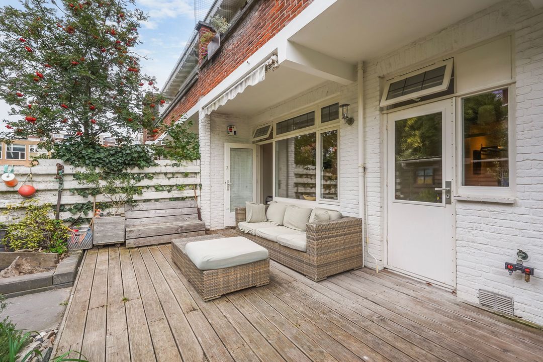 Sfeervol heringedeelde 4 kamer parterre appartement met 3 slaapkamers, voor- en zonnige ruime achtertuin op het zuidwesten voorzien van achterom en vrijstaande houten berging. Fietsenberging.