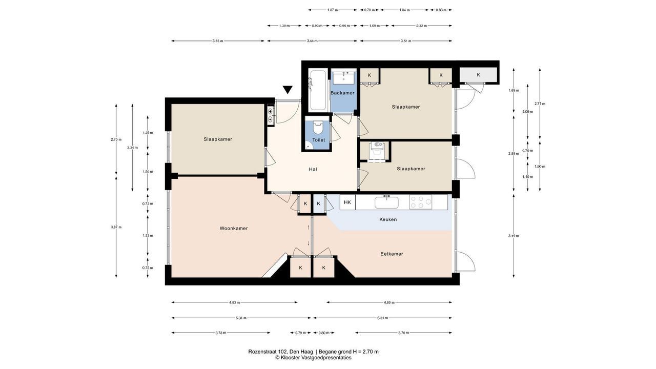 Voor de afmetingen van de kamers verwijzen wij u naar de plattegronden.