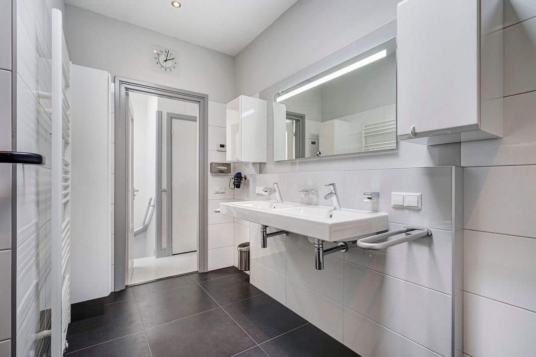 De onderhoudssituatie van het sanitair en de keuken is goed.