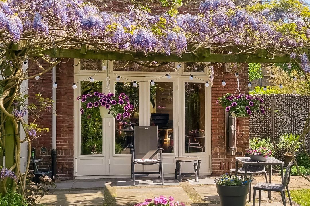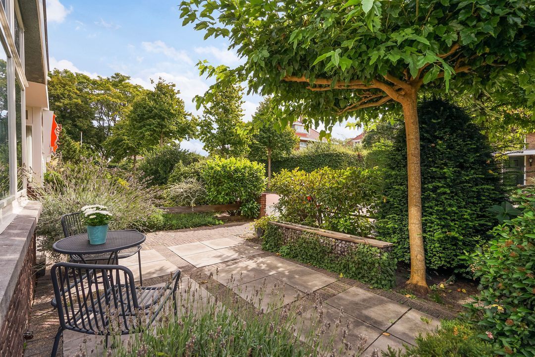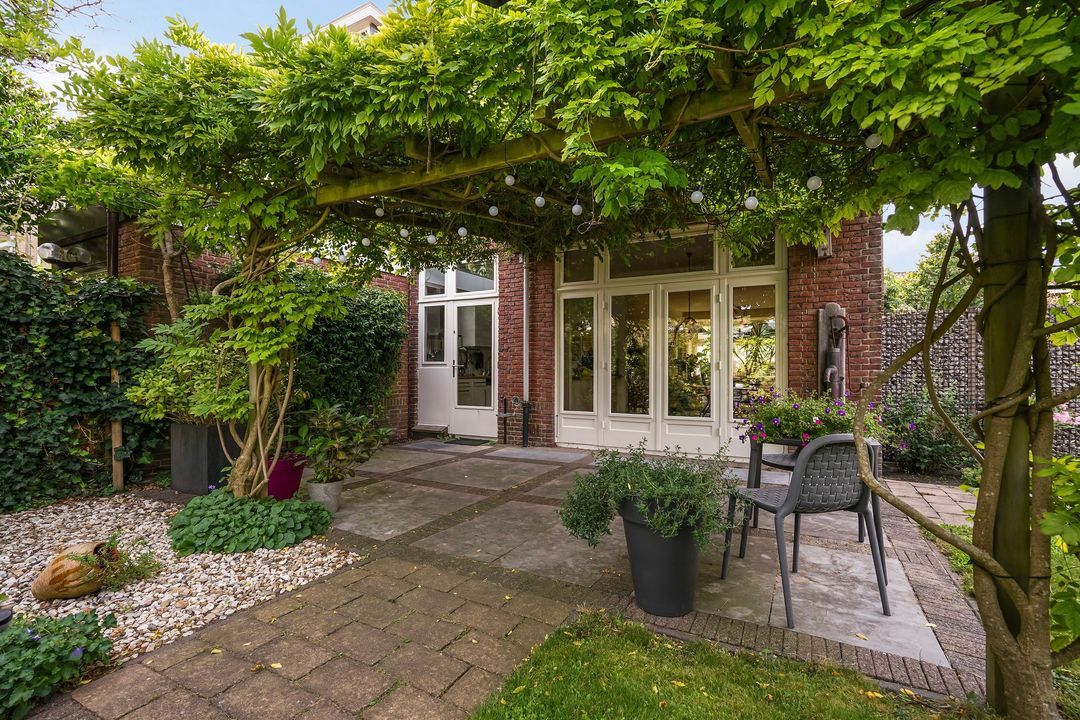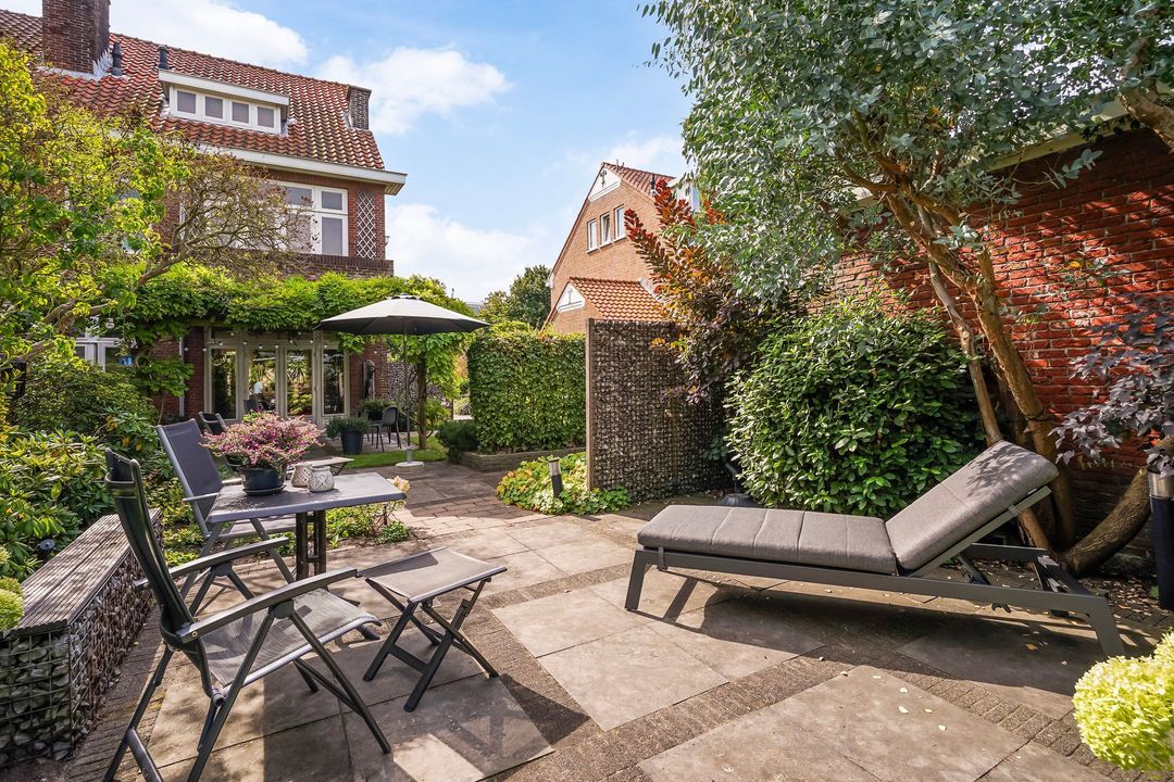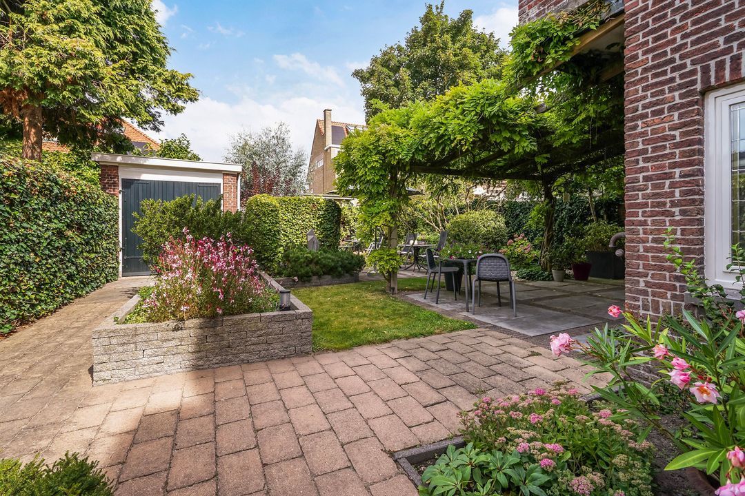 Via openslaande deuren aan de achterzijde vanuit de zijerker en keukendeur toegang tot de riante, zonnige en fraai aangelegde tuin voorzien van een eigen oprit en een vrijstaande garage met elektra.