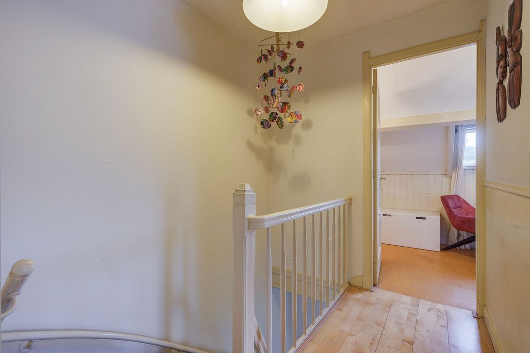 Overloop, separate ruimte met aansluitingen voor wasmachine en droger, opstelplaats cv-ketel en opbergruimte. Ruime achterslaapkamer voorzien van dakkapel, zijraam en vaste kast en voorslaapkamer met dakkapel, vaste kast en wastafel.