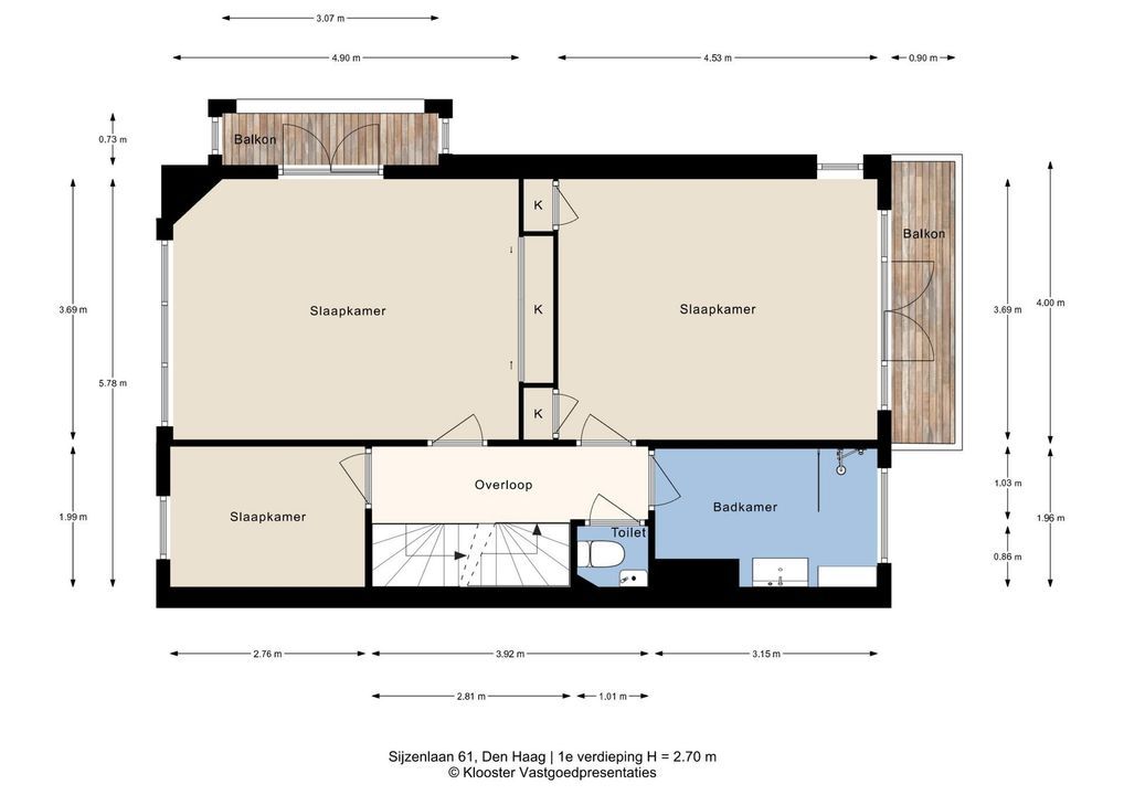 Voor de afmetingen van de kamers verwijzen wij u naar de plattegronden.