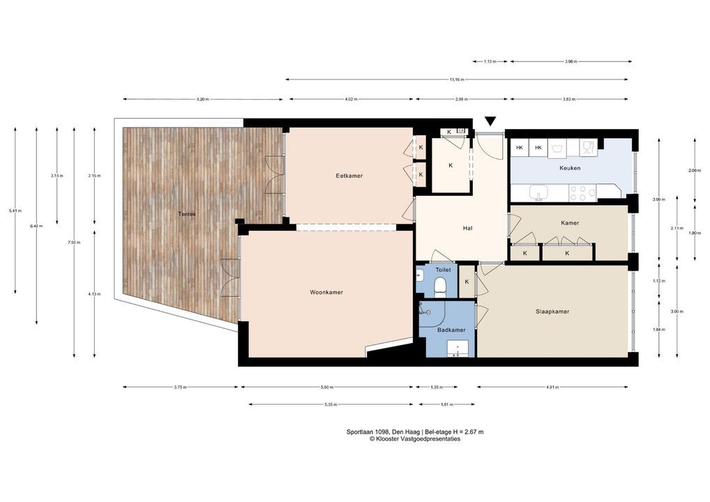 Voor de afmetingen van de kamers verwijzen wij u naar de plattegronden.