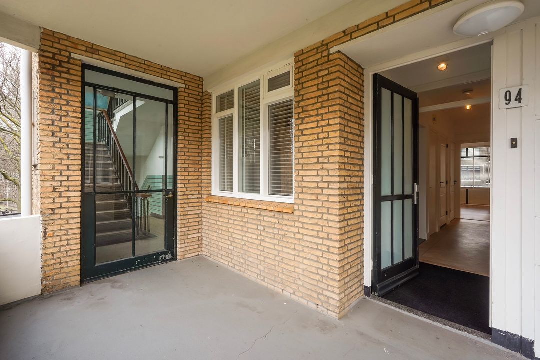 Afgesloten entree met bellen- en brievenbussentableau, via fraai trappenhuis (met grote raampartijen, originele wandtegels en granitovloeren) of lift naar 1e verdieping, galerij met zitgedeelte voor het appartement met middag- en avondzon.