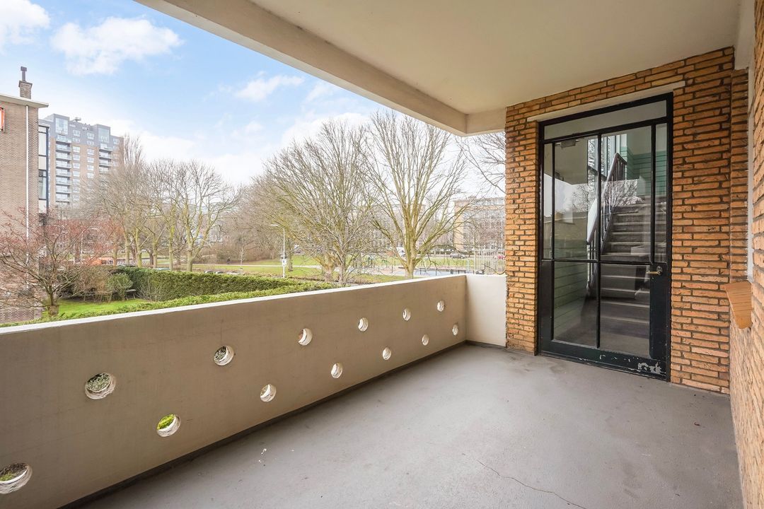 Vanuit de keuken, gelegen aan de galerijzijde, een vrij uitzicht over het Stadhoudersplantsoen.