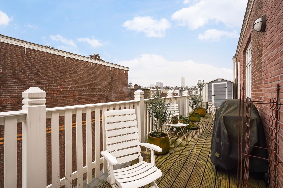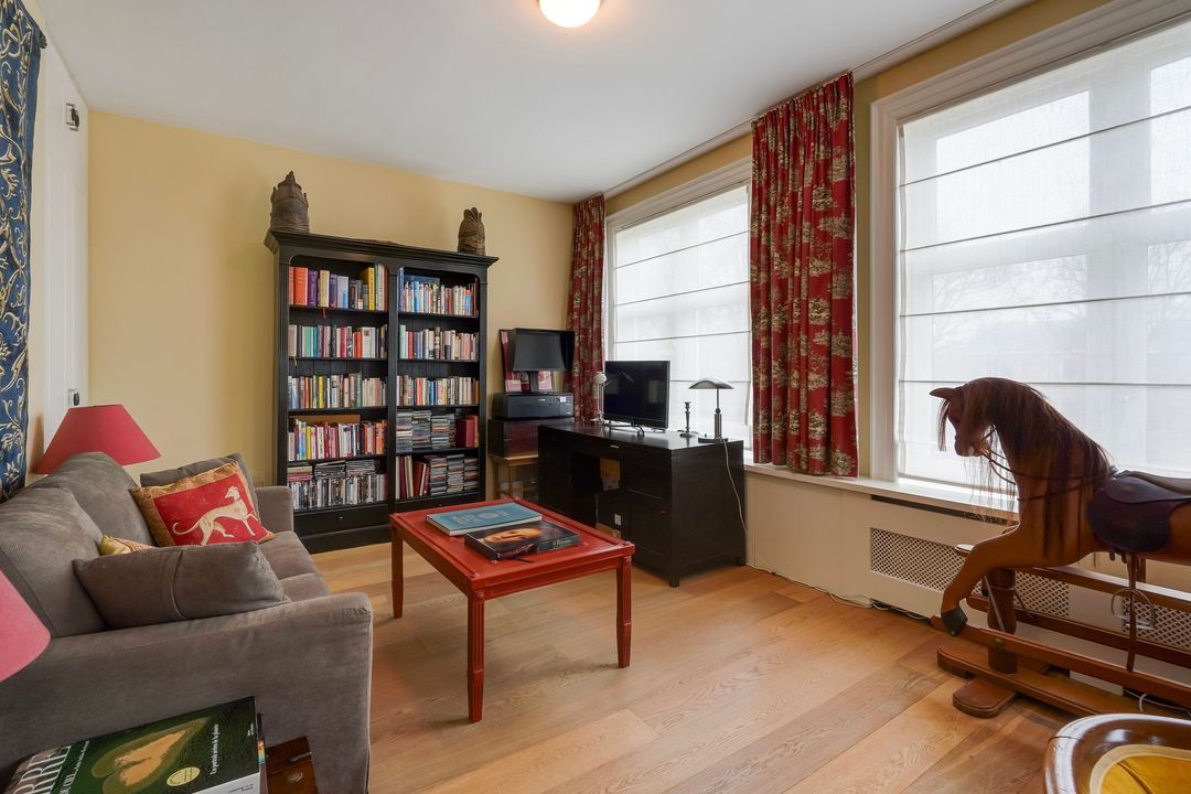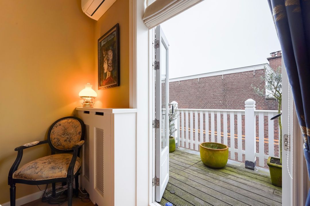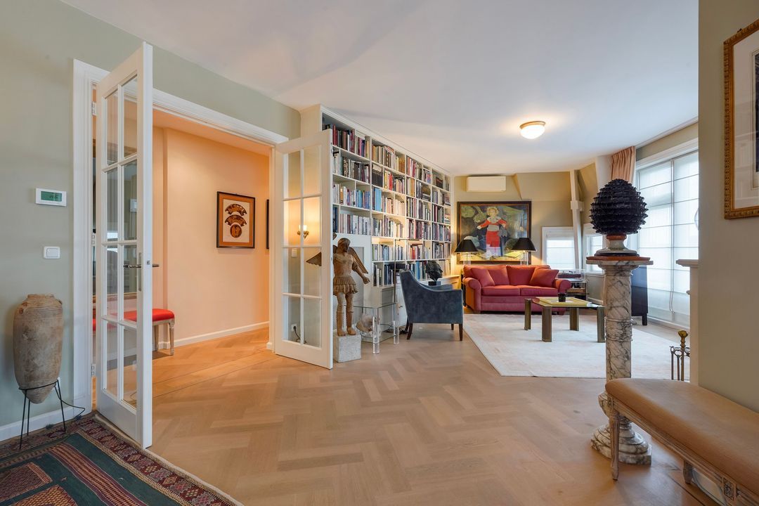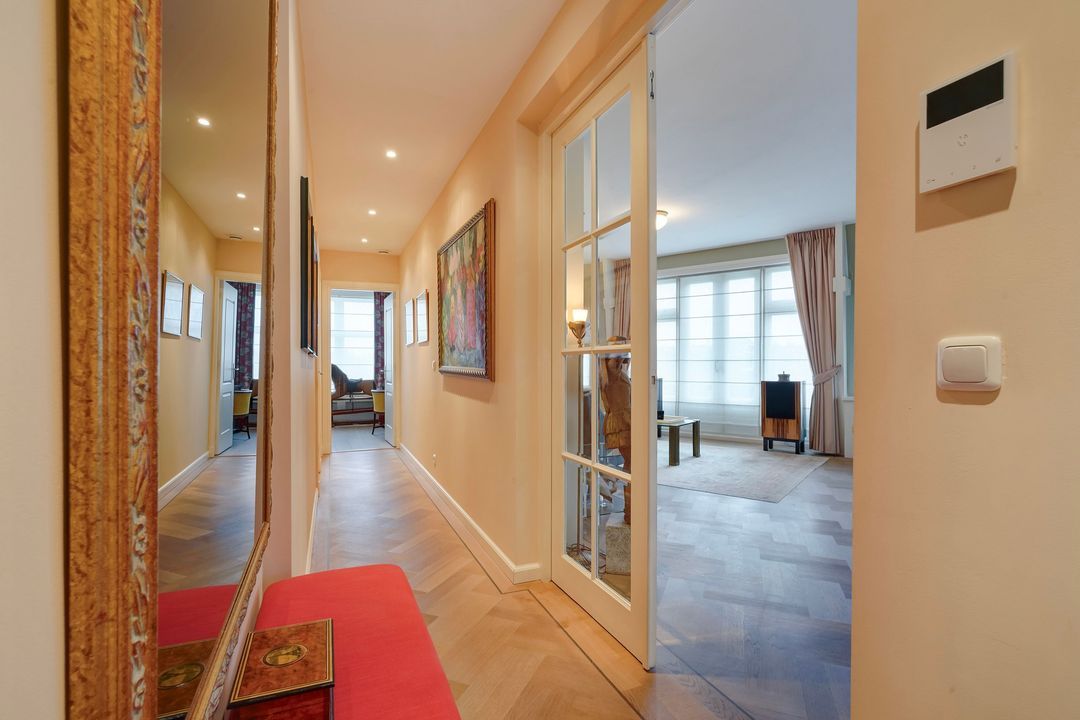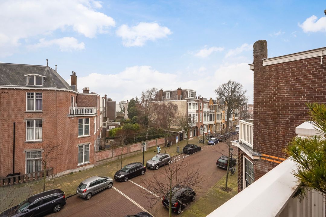Due to its corner location, the living area largely faces the quiet Frankenslag. The southwest-facing front, with its monumental Statenkwartier facade, allows for beautiful natural light. This stylish renovation project (behind the existing facade) was completed in 2016 and includes: 3 bedrooms, 2 bathrooms, a luxurious open-plan kitchen with integrated appliances, beautiful wooden floors, a fireplace, 2 balconies, and a bicycle storage on street level.