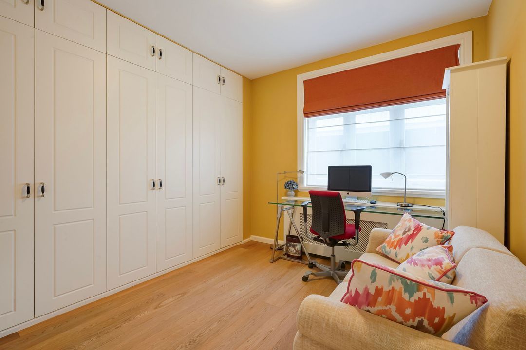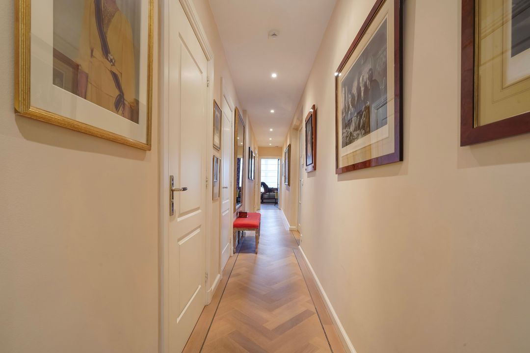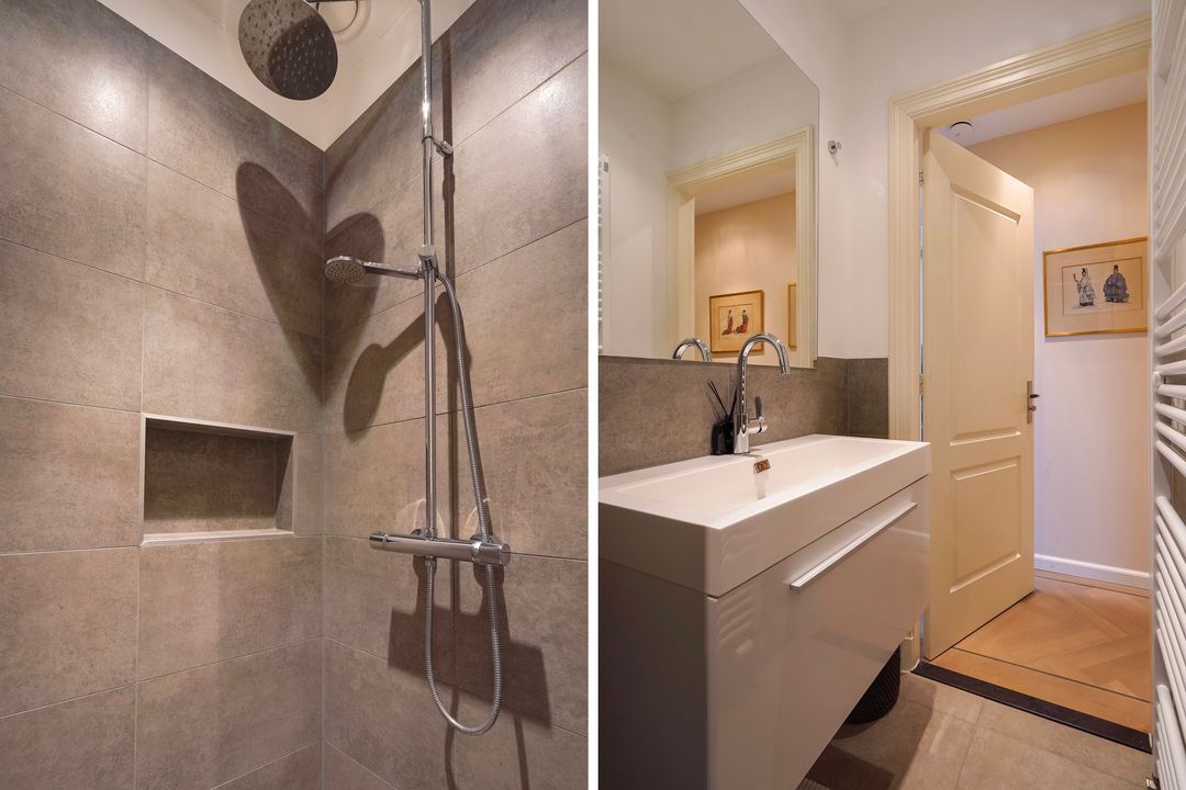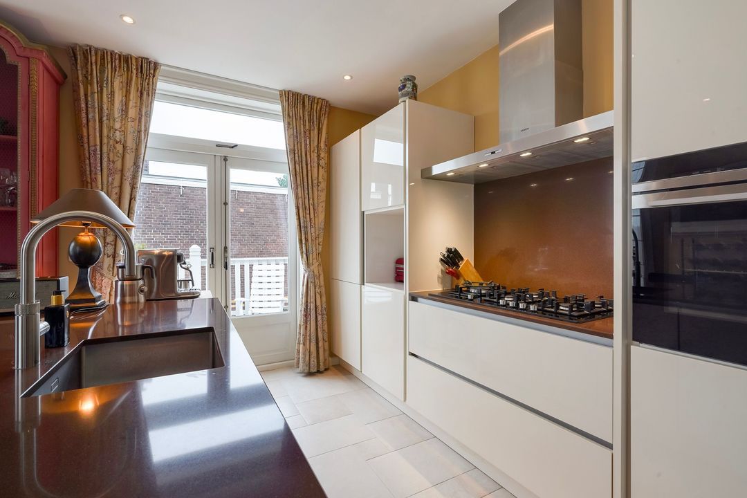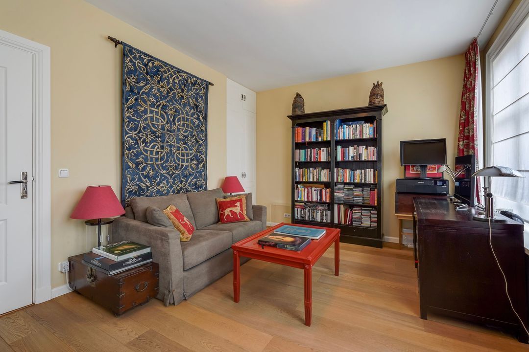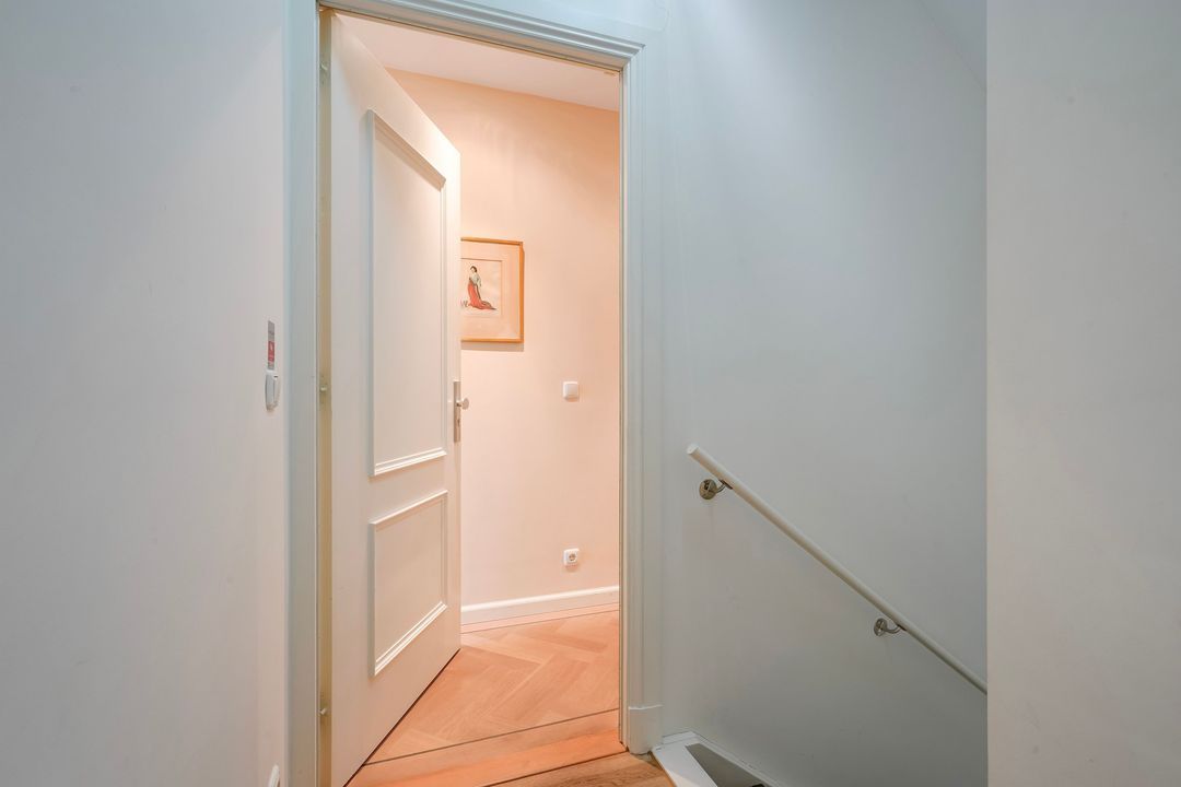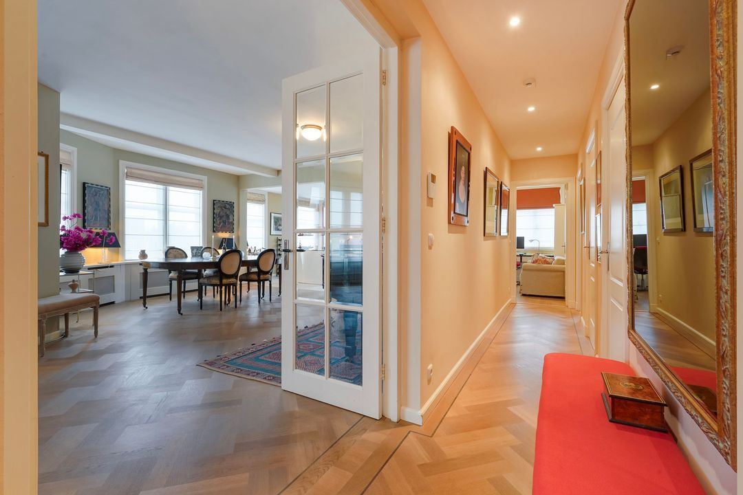 Due to its corner location, the living area largely faces the quiet Frankenslag. The southwest-facing front, with its monumental Statenkwartier facade, allows for beautiful natural light. This stylish renovation project (behind the existing facade) was completed in 2016 and includes: 3 bedrooms, 2 bathrooms, a luxurious open-plan kitchen with integrated appliances, beautiful wooden floors, a fireplace, 2 balconies, and a bicycle storage on street level.