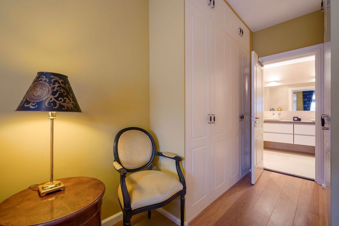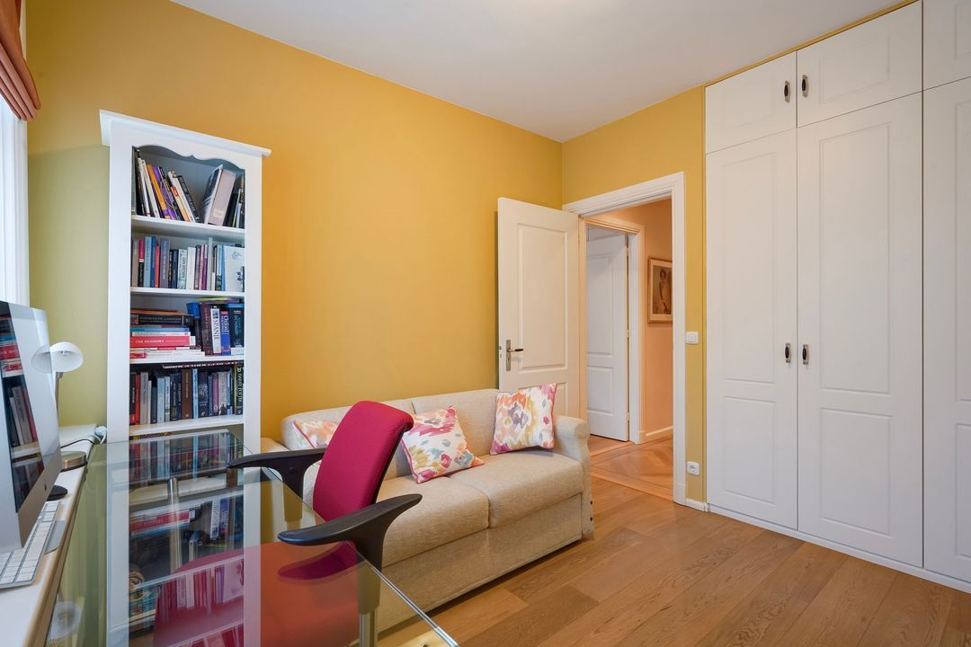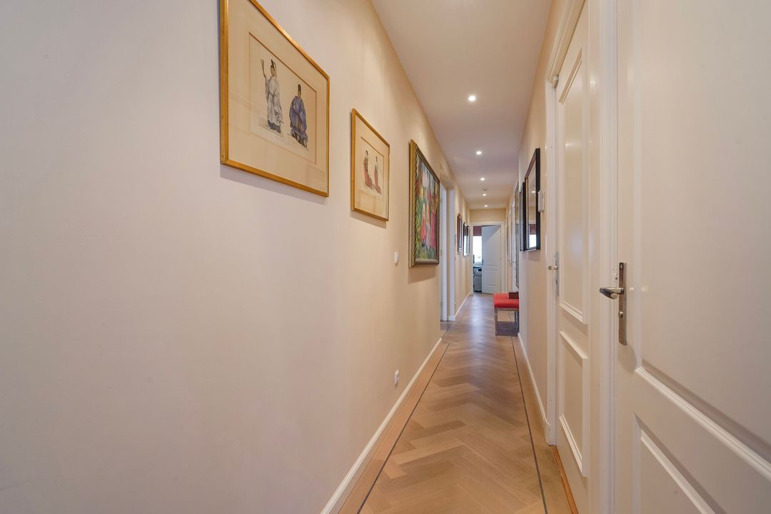 Situated on the corner of Frankenslag, behind a characteristic facade, this spacious and charming 5-room apartment is located on the second floor and is accessible by elevator.