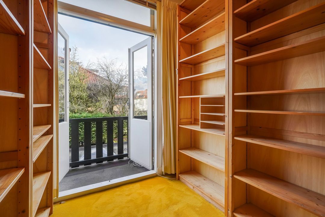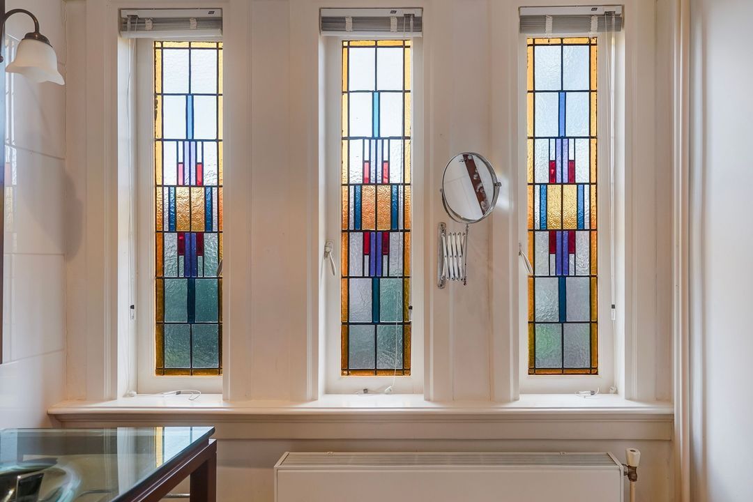 The house has wooden window frames with partly double glazing.