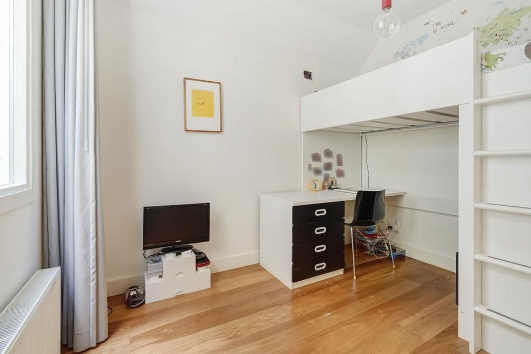 Modern, black and white tiled bathroom with double walk-in shower, double washbasin, mirror cabinets, 2 side windows and design radiator, separate modern toilet with hand basin. 3 Bedrooms in the rear building, of which the rear bedroom offers access to the attractive city garden through French doors.