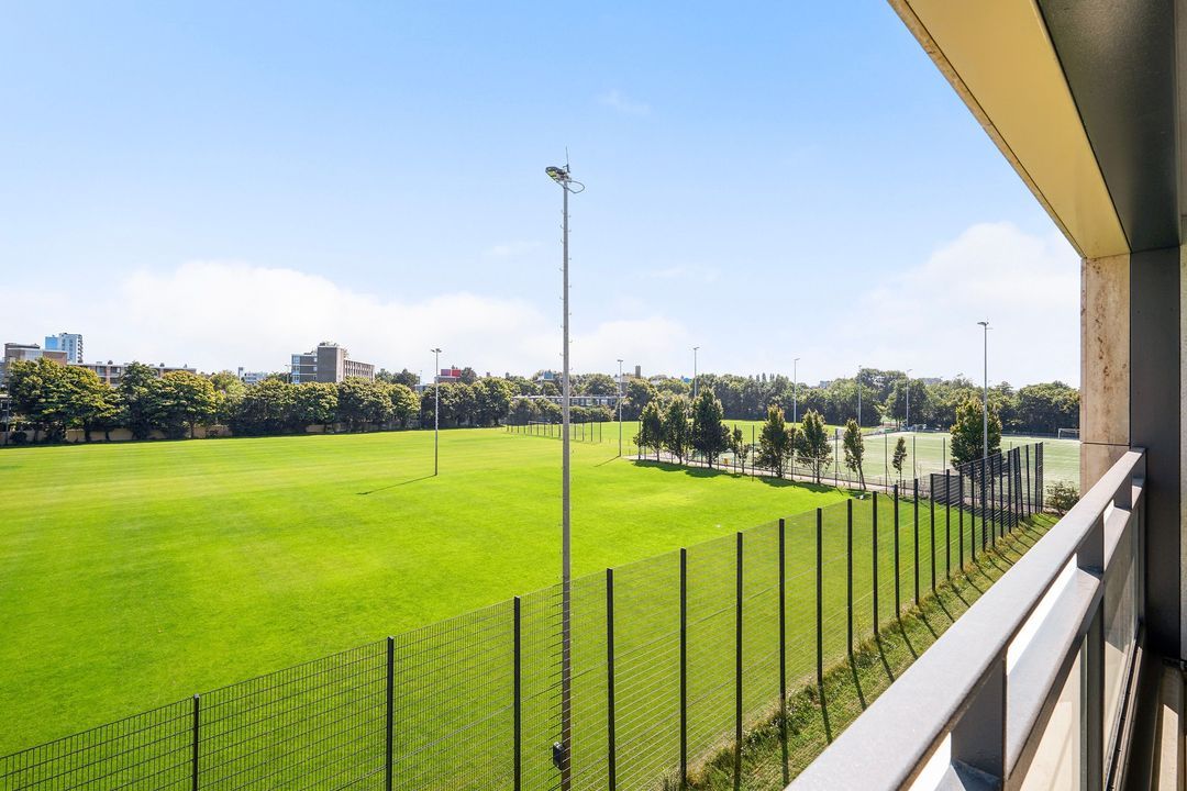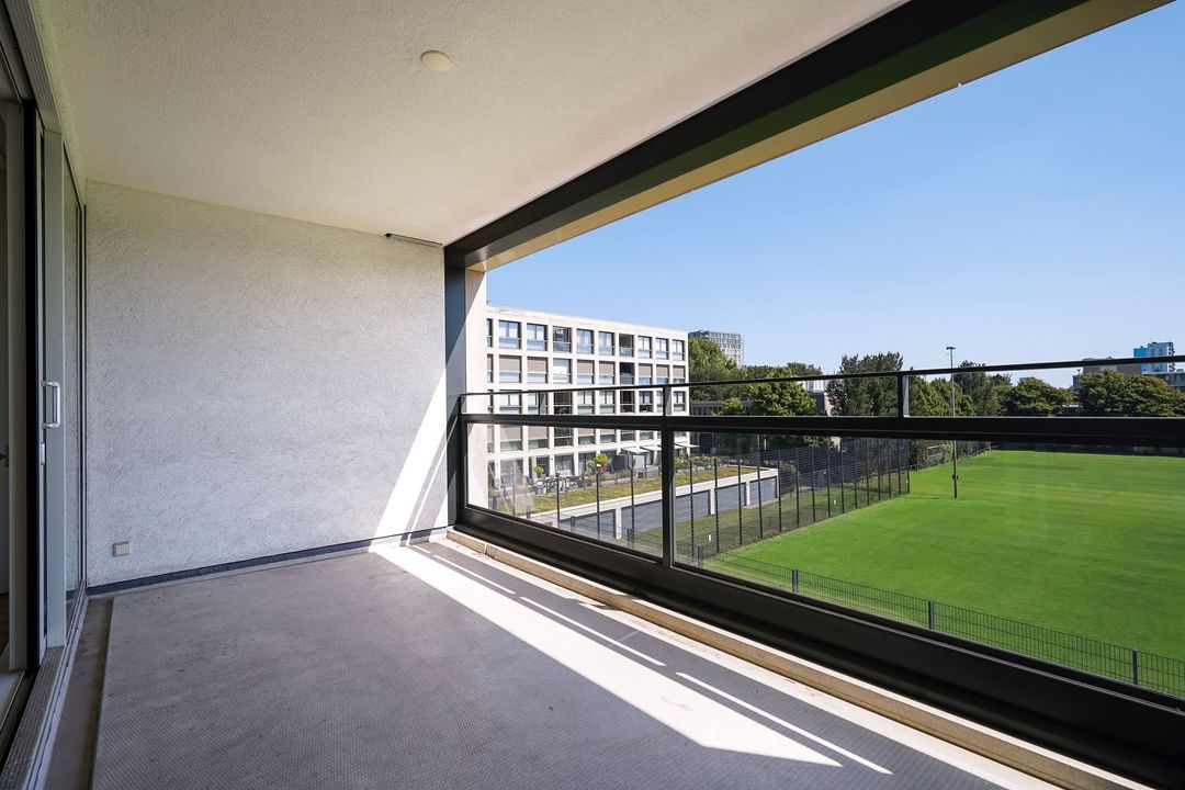 Via schuifpui aan de achterzijde toegang naar het heerlijk zonnige terras op het zuidoosten gelegen met weids uitzicht over sportvelden.