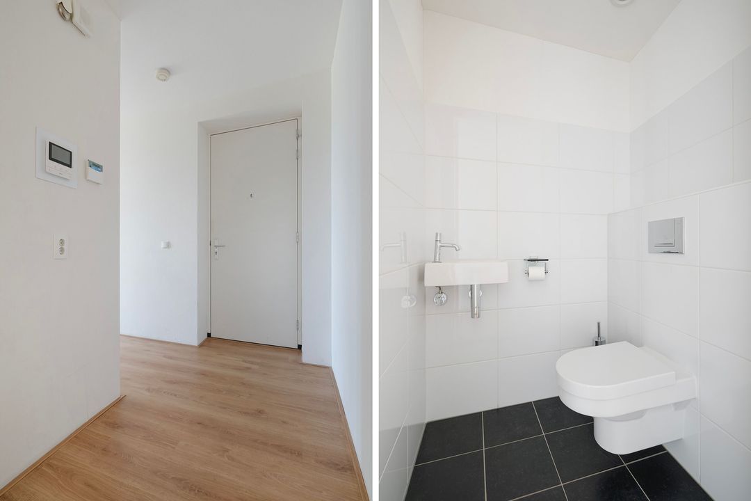 Entree appartement, gang met videofoonsysteem, vaste kast met opstelplaats c.v.-ketel, separaat modern vrijhangend toilet met fontein, vaste kast met WTW-unit.