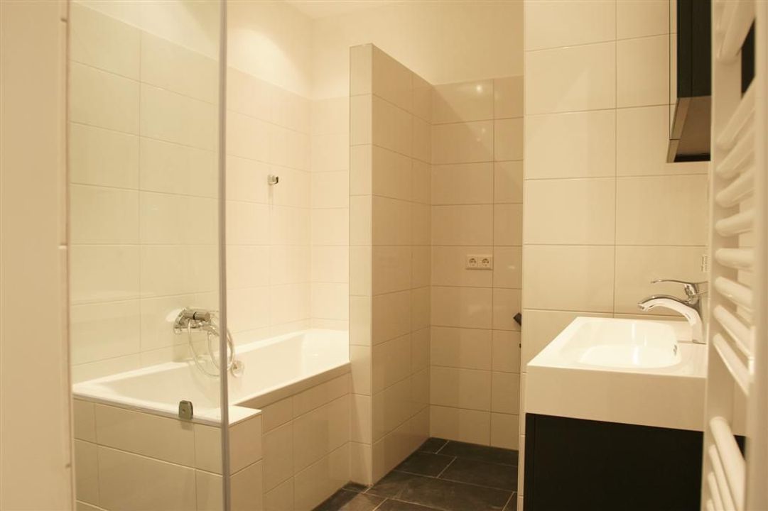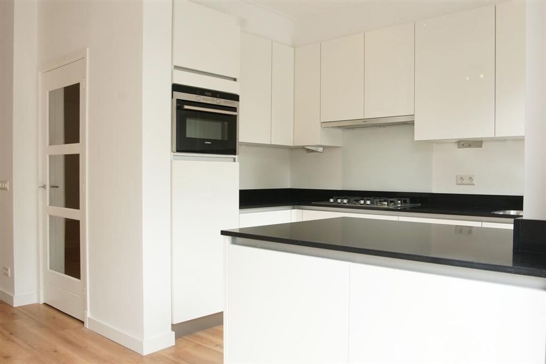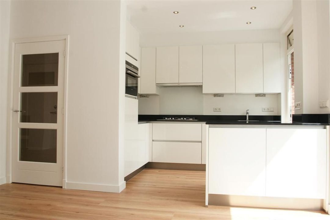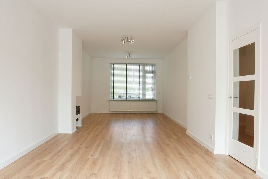 Entree, L-vormige gang met brede lamelvloerdelen, ruim zwart/wit betegelde moderne badkamer voorzien van een ligbad, badkamermeubel, wasmachine/droger en inloop massage/stort douche, modern toilet met fontein, voorslaapkamer met kastenwand. Lichte doorgebroken woon/eetkamer met gas openhaard en grote schuifpui naar riante, zonnige, volledig vrij gelegen achtertuin met stenen berging en achterom. Open keuken met wit hoogglans keukenblokken voorzien van zwart composiet aanrechtblad, 5 pits gasfornuis, koel- en separate vrieskast, vaatwasser, combi magnetron en afzuiging. Achterslaapkamer en ruime zolderkamer voorzien van een dakkapel.