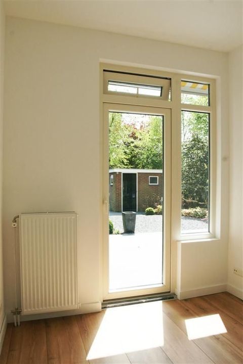 Zo te betrekken, licht vier/vijf kamer parterre appartement met een ruime, zonnige en vrij gelegen achtertuin met stenen berging en achterom.