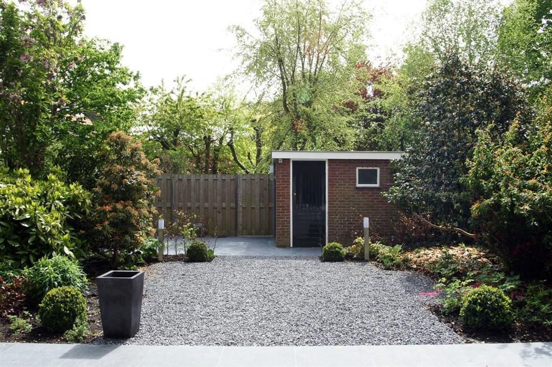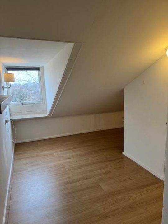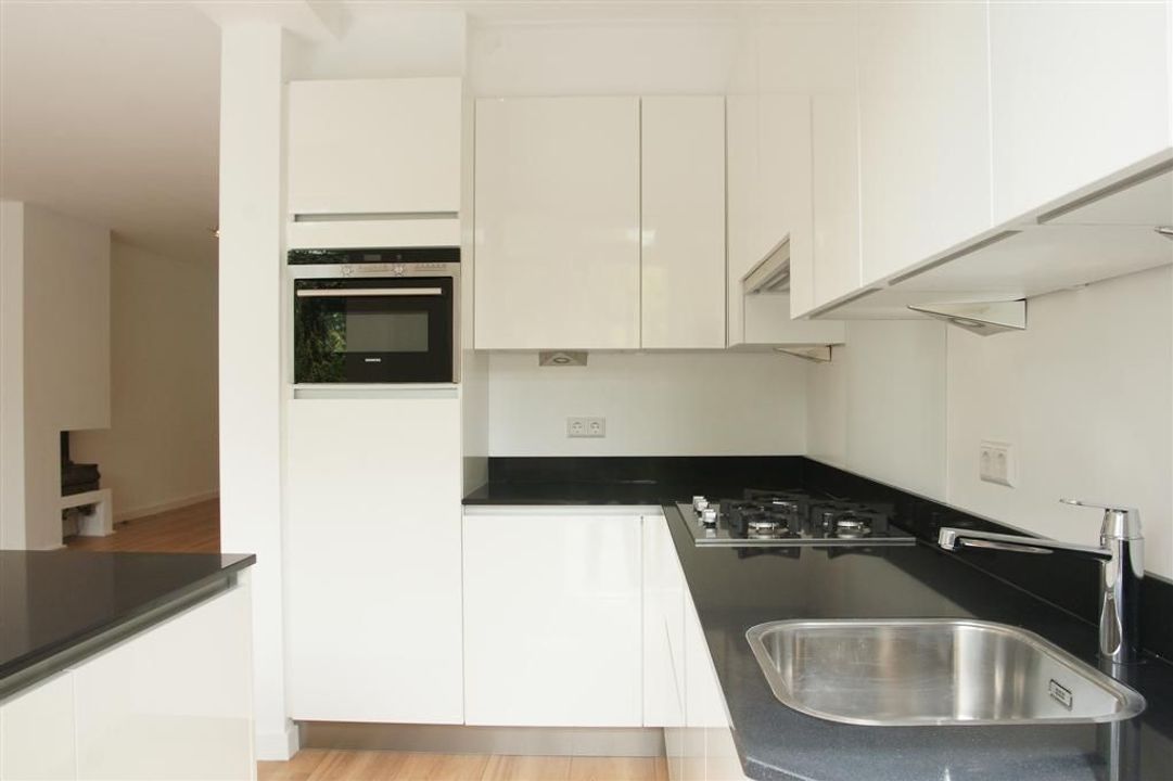 Entree, L-vormige gang met brede lamelvloerdelen, ruim zwart/wit betegelde moderne badkamer voorzien van een ligbad, badkamermeubel, wasmachine/droger en inloop massage/stort douche, modern toilet met fontein, voorslaapkamer met kastenwand. Lichte doorgebroken woon/eetkamer met gas openhaard en grote schuifpui naar riante, zonnige, volledig vrij gelegen achtertuin met stenen berging en achterom. Open keuken met wit hoogglans keukenblokken voorzien van zwart composiet aanrechtblad, 5 pits gasfornuis, koel- en separate vrieskast, vaatwasser, combi magnetron en afzuiging. Achterslaapkamer en ruime zolderkamer voorzien van een dakkapel.