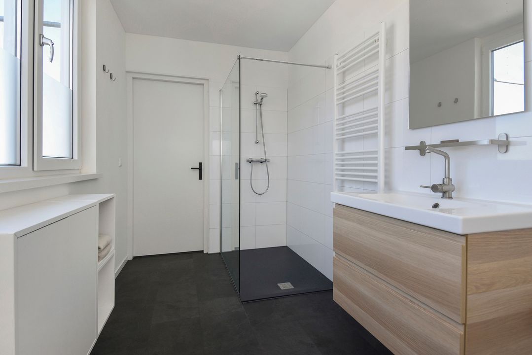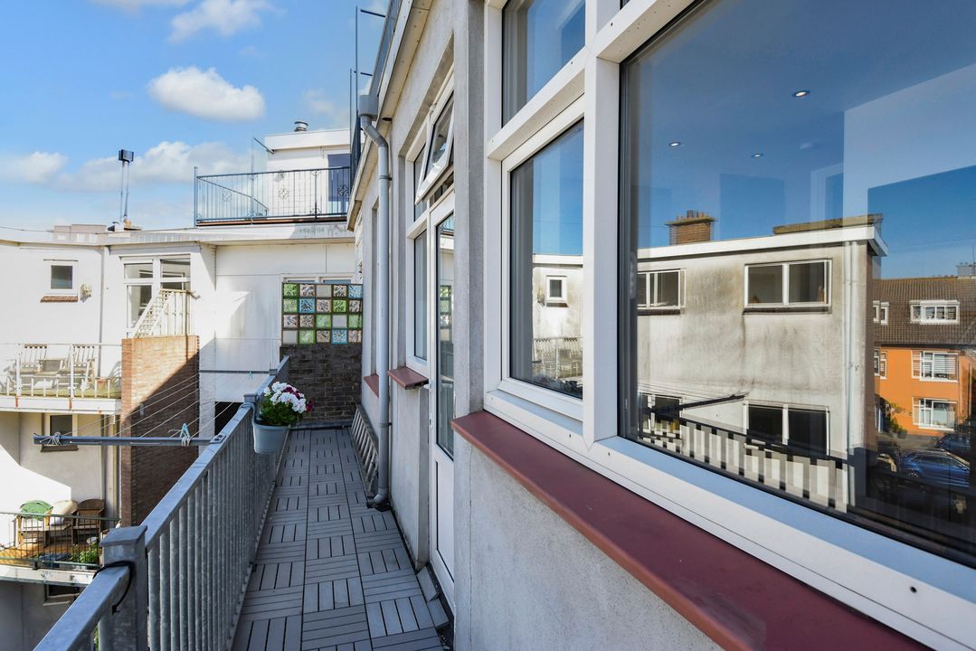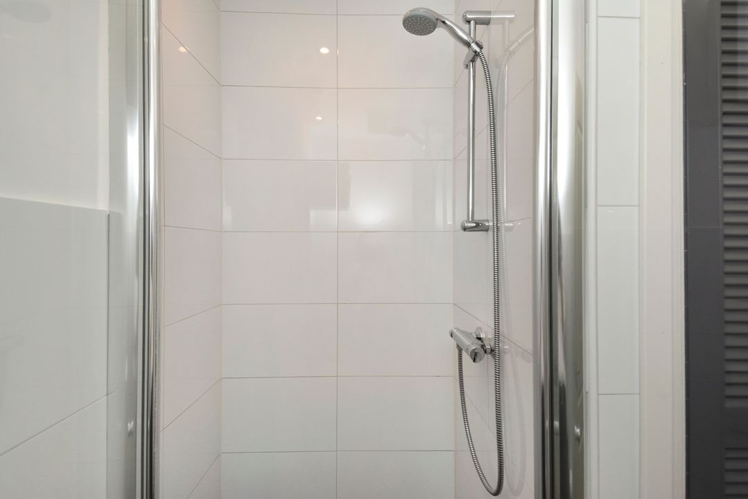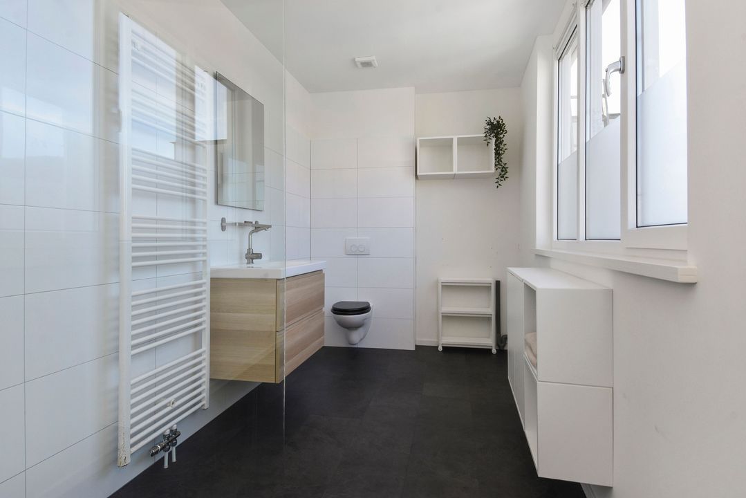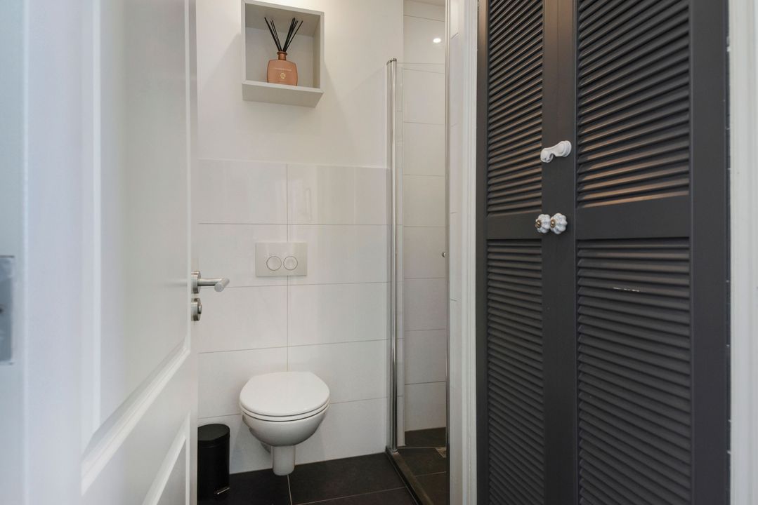 Spacious landing, second modern and spacious bathroom with a shower, vanity, and toilet. Two bedrooms are located at the front, one of which has French doors opening onto the south-facing terrace with durable hardwood decking and stunning views of Scheveningen harbor.