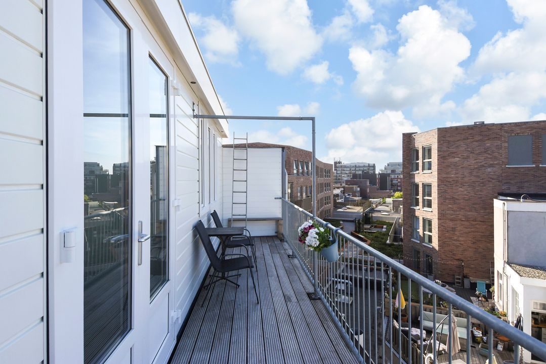 Ruime overloop, tweede moderne en ruime badkamer met douche, wastafelmeubel en toilet. Twee slaapkamers aan de voorzijde gelegen, waarvan 1 met openslaande deuren naar het terras gelegen op het zuiden met duurzame hardhouten terrasplanken en prachtig uitzicht op de haven van Scheveningen.