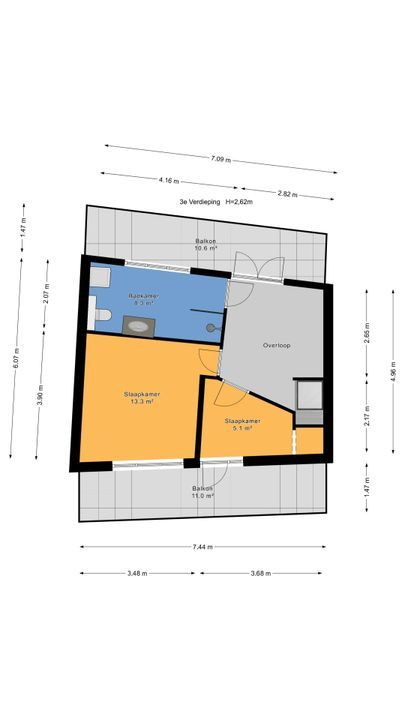 Voor de afmetingen van de kamers verwijzen wij u naar de plattegronden.
