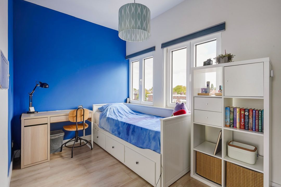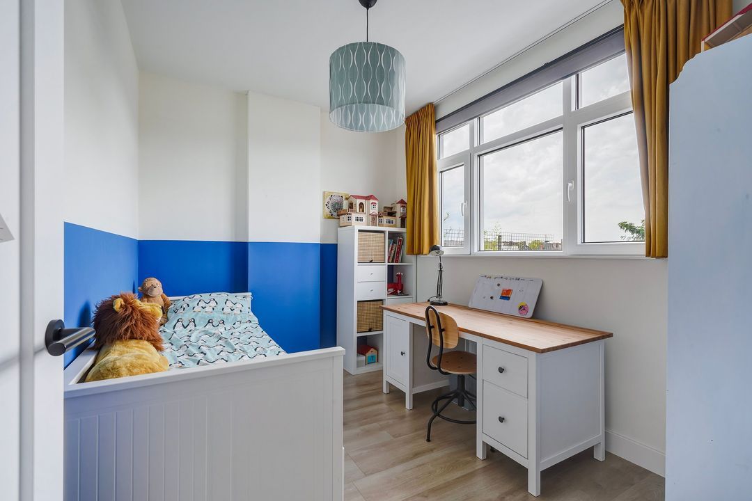 Ruime kamer ensuite met 2 vaste kasten en voorerker. Lichte ruime voorslaapkamer en achterslaapkamer thans in gebruik als hobbykamer met toegang naar het balkon.