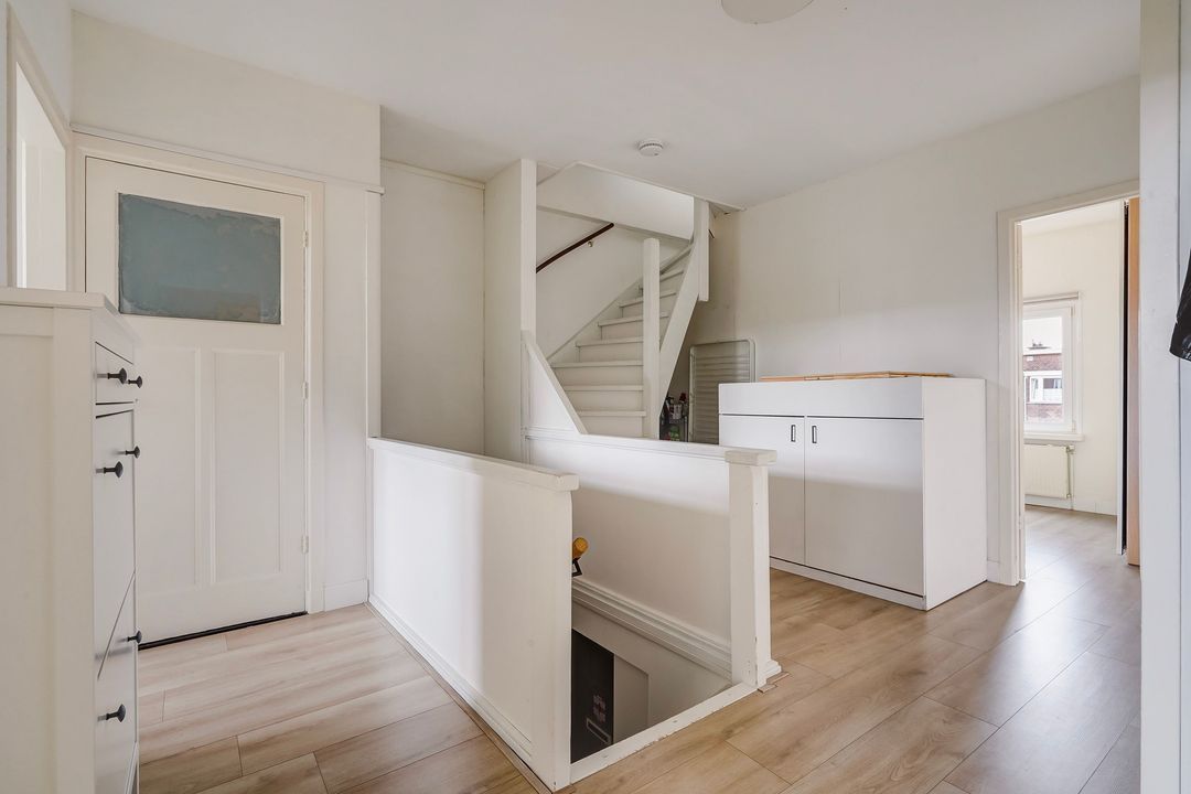Via “Haagsch portiek”, entree op de 1e verdieping, ruime vestibule met meterkast en bergruimte onder de trap, trap naar de 2e (woon)verdieping.