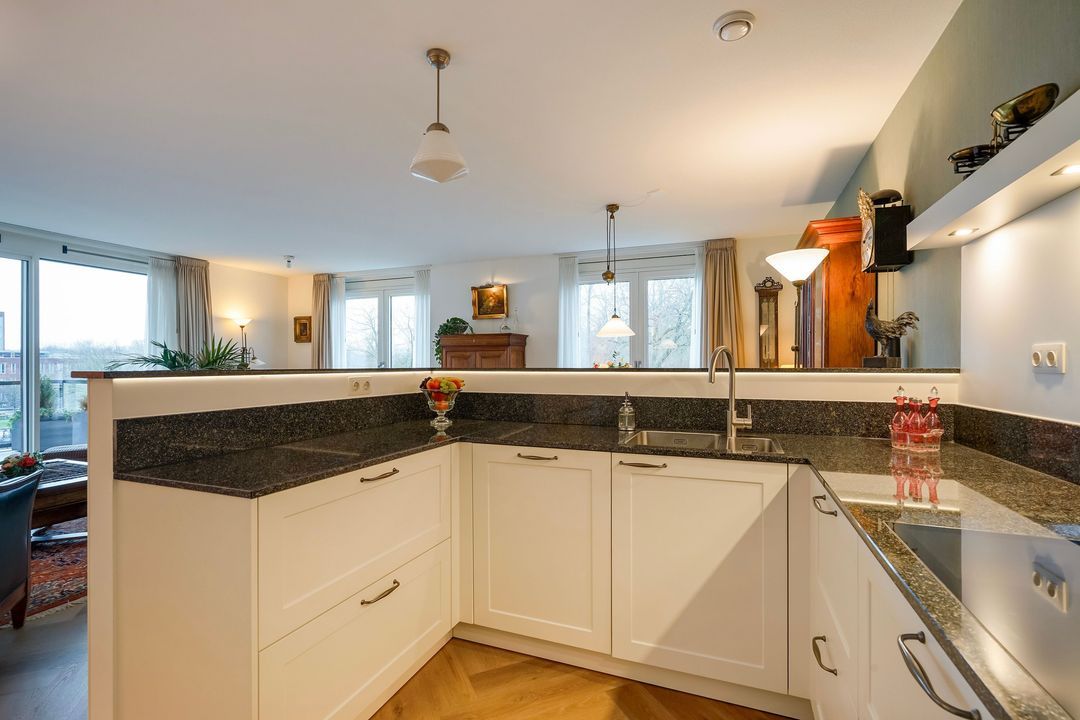 Werkelijk schitterend en luxueus verbouwd 3-kamer appartement (ca. 112 m²) voorzien van fraaie living met luxe woonkeuken, 2 slaapkamers, luxe sanitair en een riant, zonnig terras (ca. 19 m²) gelegen op het zuidwesten, parkeerplaats en separate berging in de ruime garage. Erfpacht eeuwigdurend afgekocht.