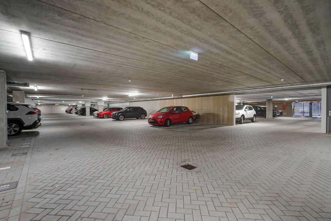 Via interne lift toegang tot de ruime parkeergarage met eigen parkeerplaats en (fietsen)berging met elektra.