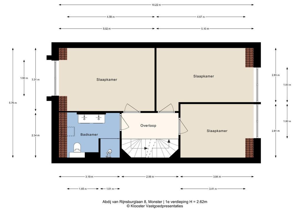Voor de afmetingen van de kamers verwijzen wij u naar de plattegronden.